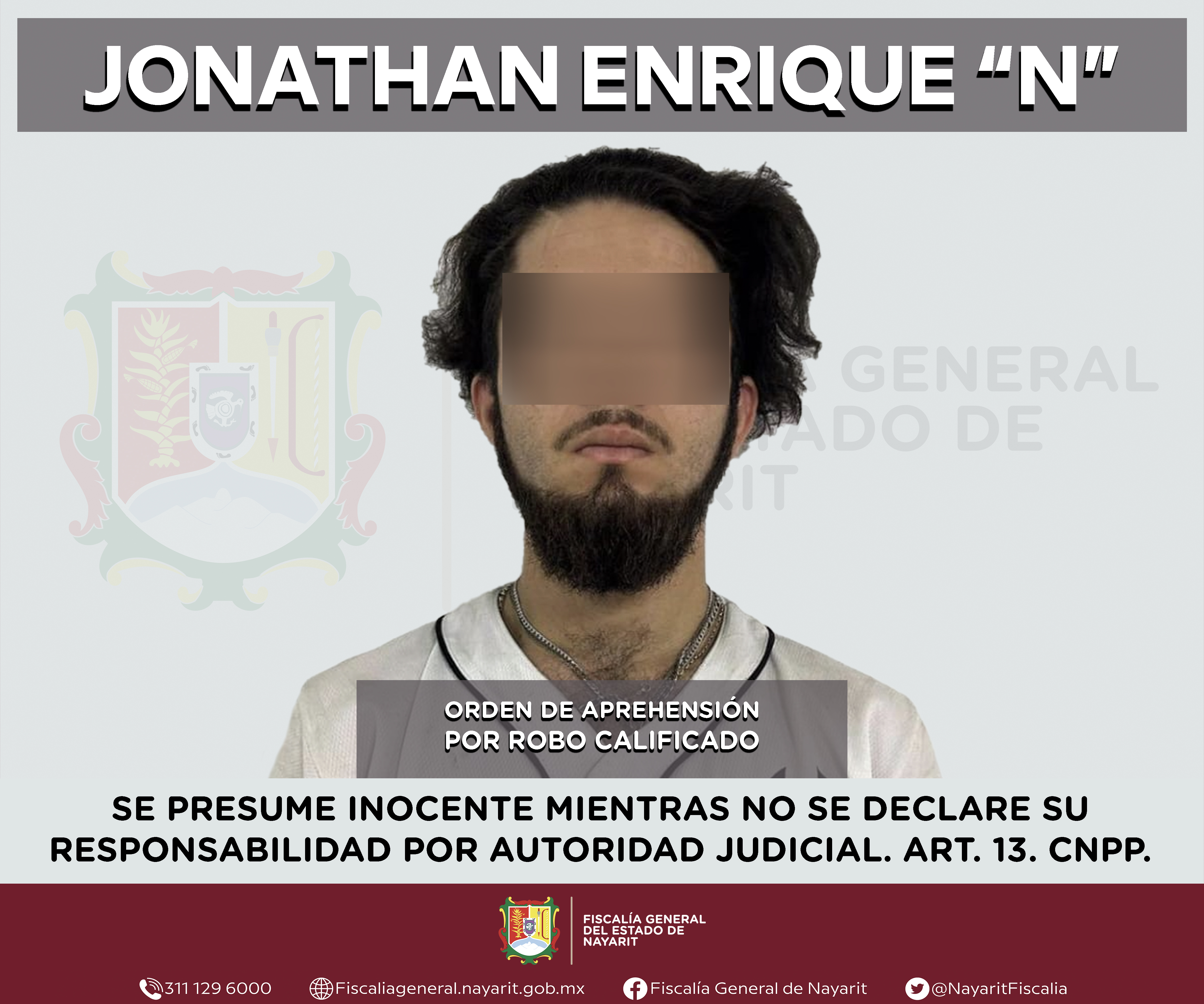 Elementos de la Agencia de Investigación Criminal de Nayarit ejecutaron una orden de aprehensión en la capital nayarita contra Jonathan Enrique “N”, por su presunta participación en hechos que bajo apreciación de la ley configuran el delito de ro...