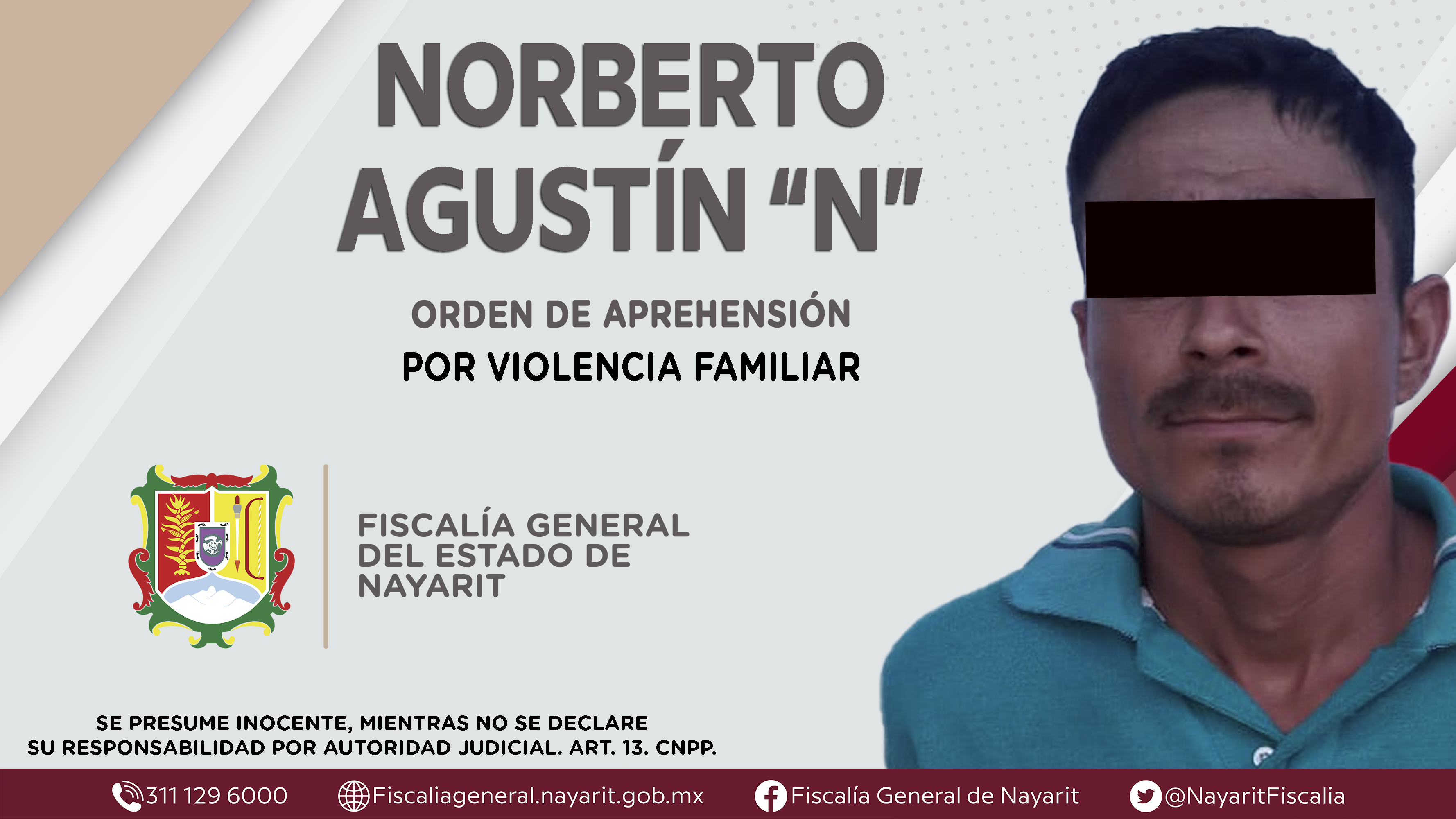 La Fiscalía General de Nayarit a través de la Agencia de Investigación Criminal cumplimentó en la localidad 6 de Enero, municipio de Tepic, una orden de aprehensión contra Norberto Agustín “N”, por su probable responsabilidad penal en hechos qu...