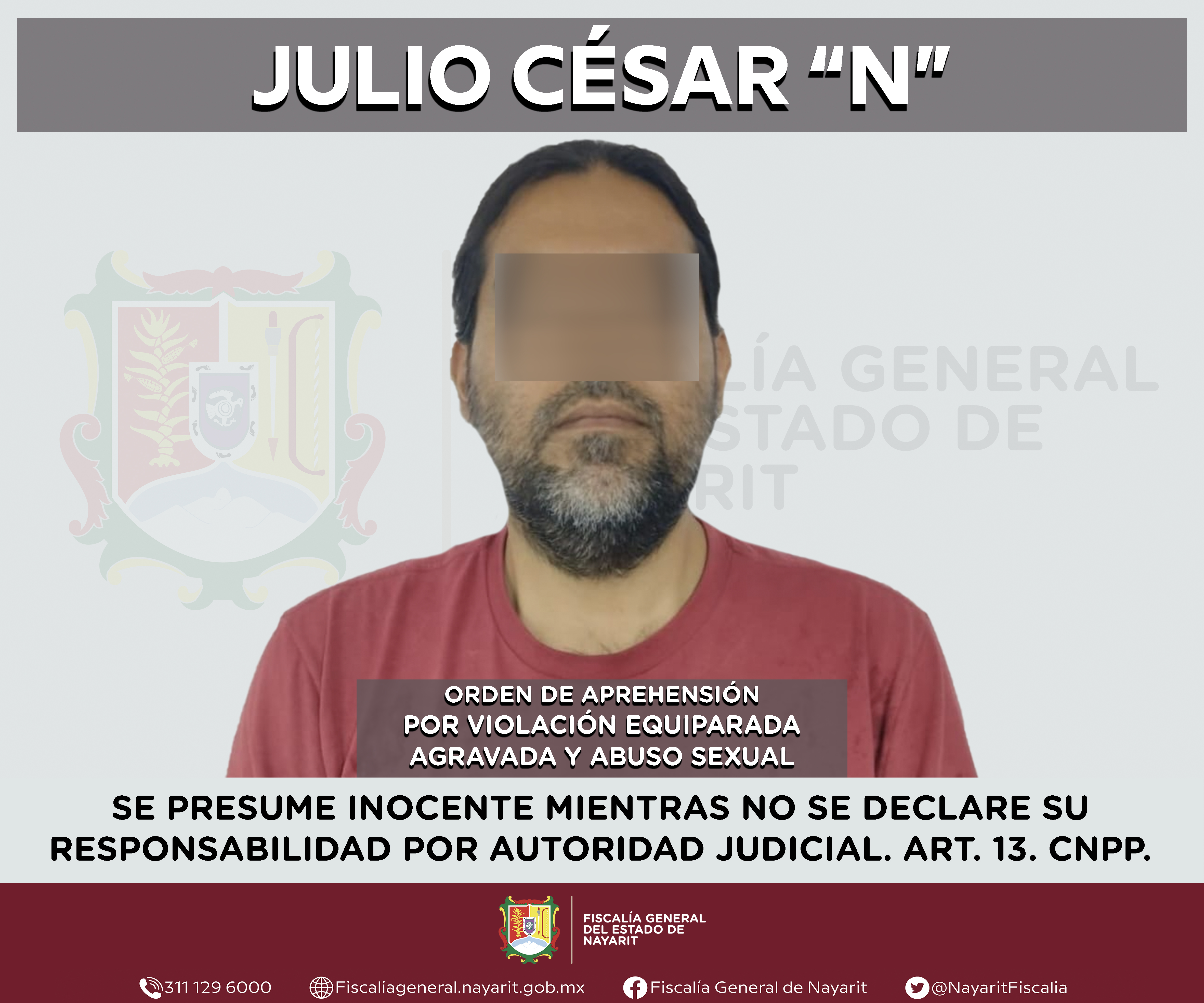 Elementos de la Agencia de Investigación Criminal de Nayarit ejecutaron una orden de aprehensión en la capital nayarita contra Julio César “N”, por su presunta participación en hechos que bajo apreciación de la ley configuran los delitos de viol...