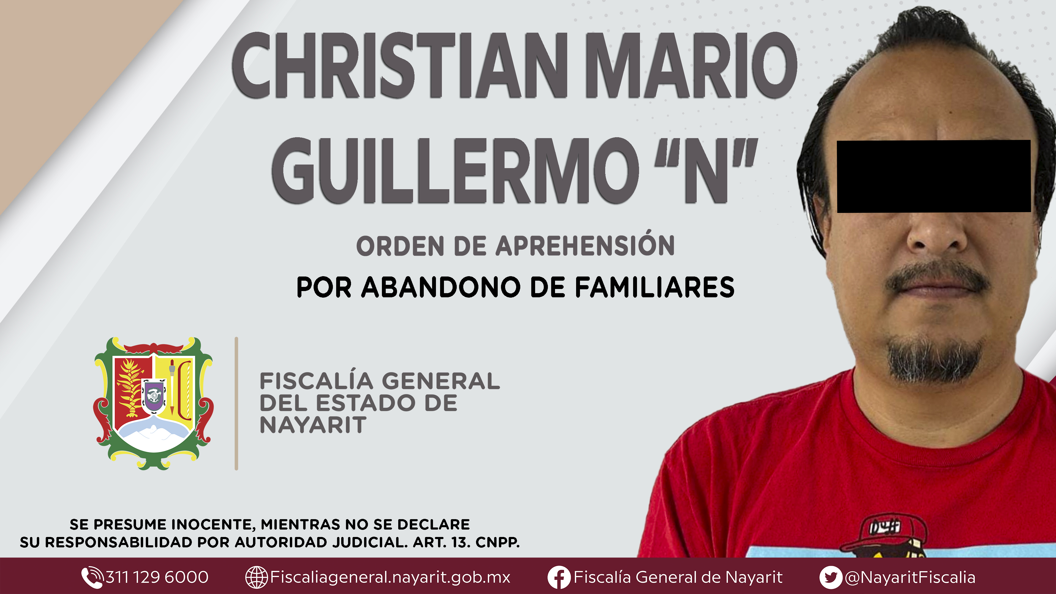 La Fiscalía General del Estado a través de la Agencia de Investigación Criminal dio cumplimiento a una orden de aprehensión en la ciudad de Tepic contra Christian Mario Guillermo “N”, por su presunta participación en hechos que según apreciaci...
