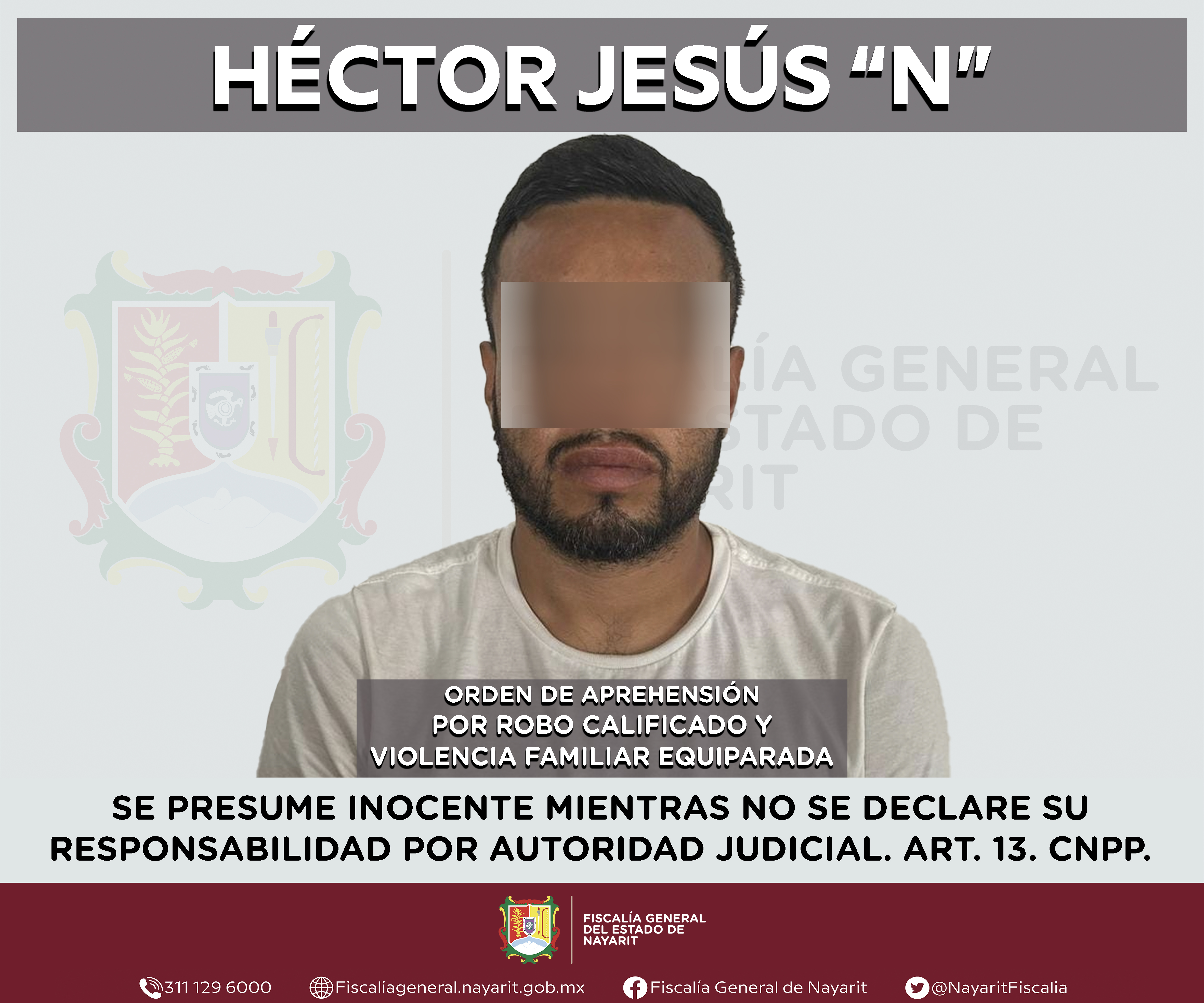 Boletín 1241/2024 | SE LE EJECUTA ORDEN DE APREHENSIÓN POR ROBO CALIFICADO Y VIOLENCIA FAMILIAR
