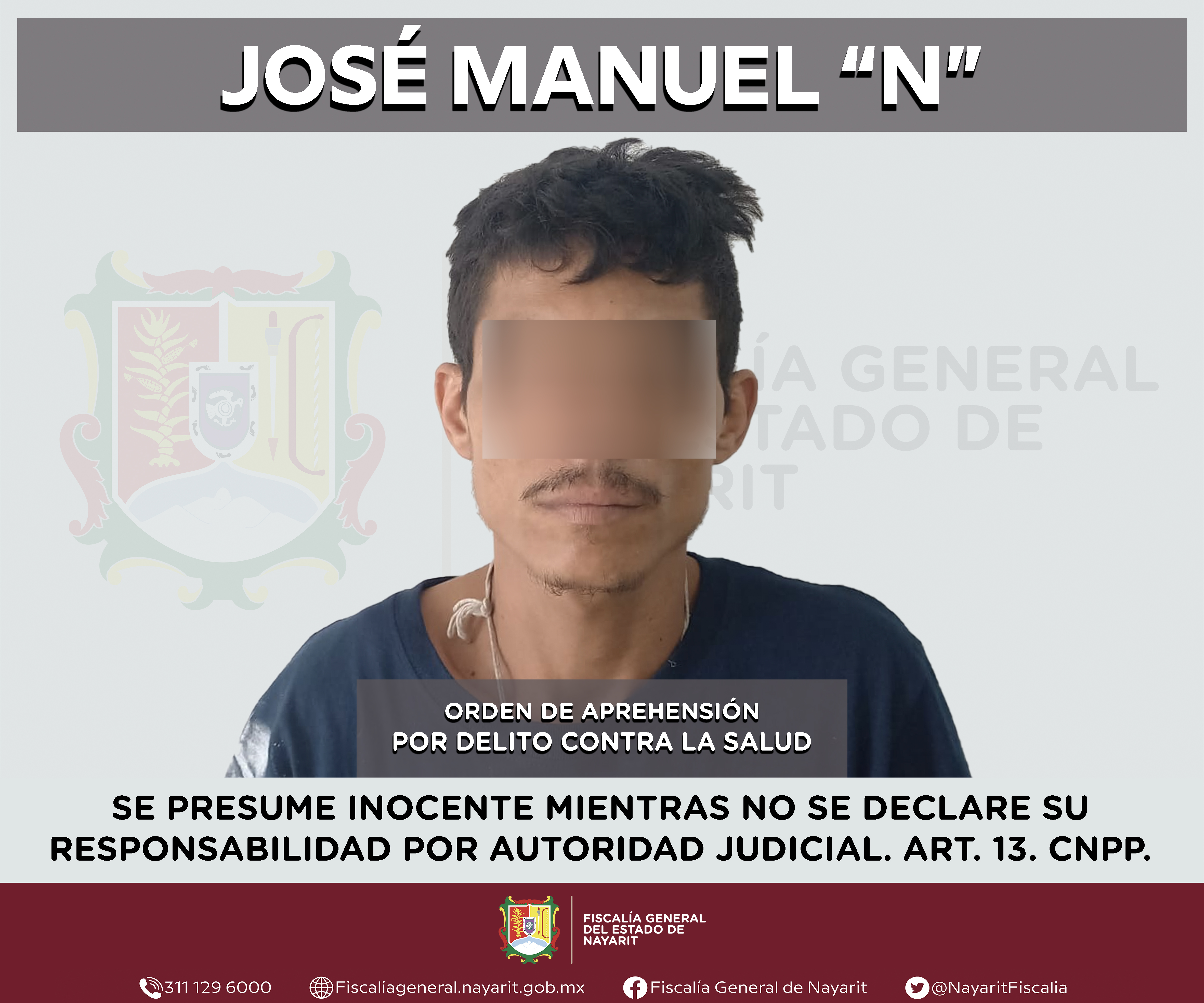 La Fiscalía General del estado de Nayarit a través de la Agencia de Investigación Criminal ejecutó una orden de aprehensión en la ciudad de Tepic contra José Manuel “N”, por su probable participación en hechos que para la ley constituyen el de...