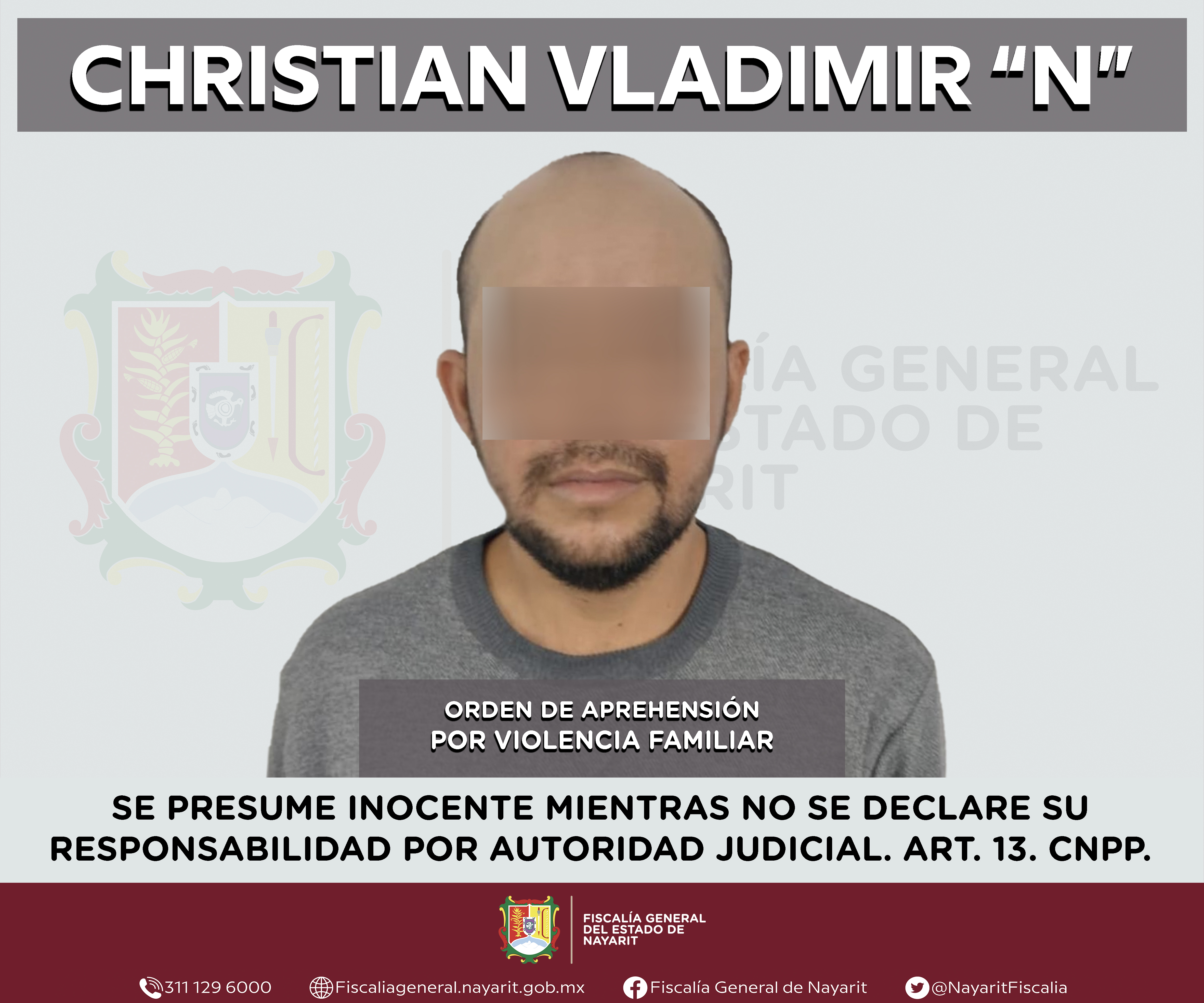 Elementos de la Agencia de Investigación Criminal de Nayarit ejecutaron una orden de aprehensión en la capital nayarita contra Christian Vladimir “N”, por su presunta participación en hechos que bajo apreciación de la ley configuran el delito de ...