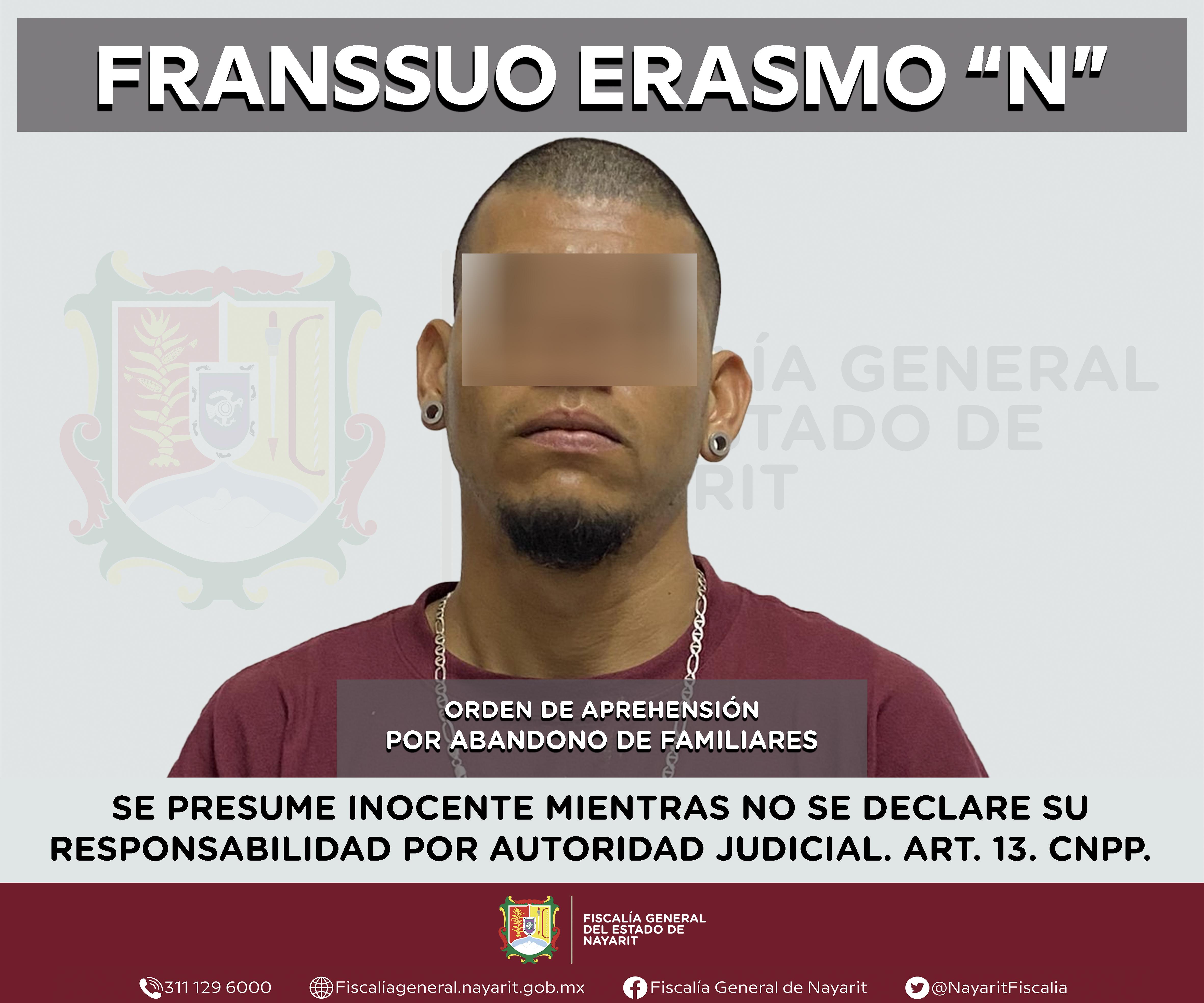 La Fiscalía General del estado de Nayarit a través de la Agencia de Investigación Criminal ejecutó una orden de aprehensión en el municipio de Santiago Ixcuintla contra Franssuo Erasmo “N”, por su probable participación en hechos que para la le...