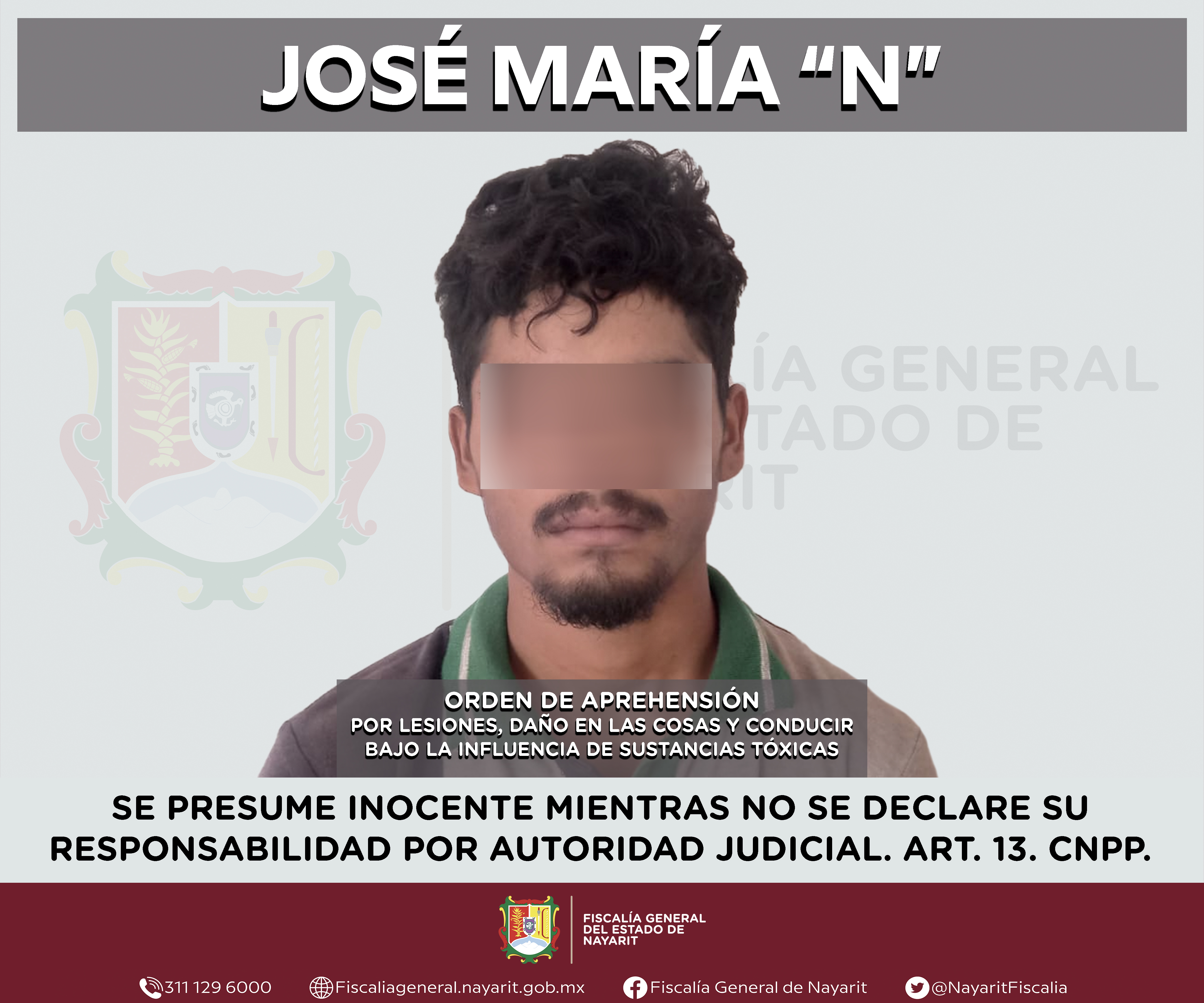 La Fiscalía General del estado de Nayarit a través de la Agencia de Investigación Criminal ejecutó una orden de aprehensión en el municipio de Ruiz contra José María “N”, por su probable participación en hechos que para la ley constituyen los...