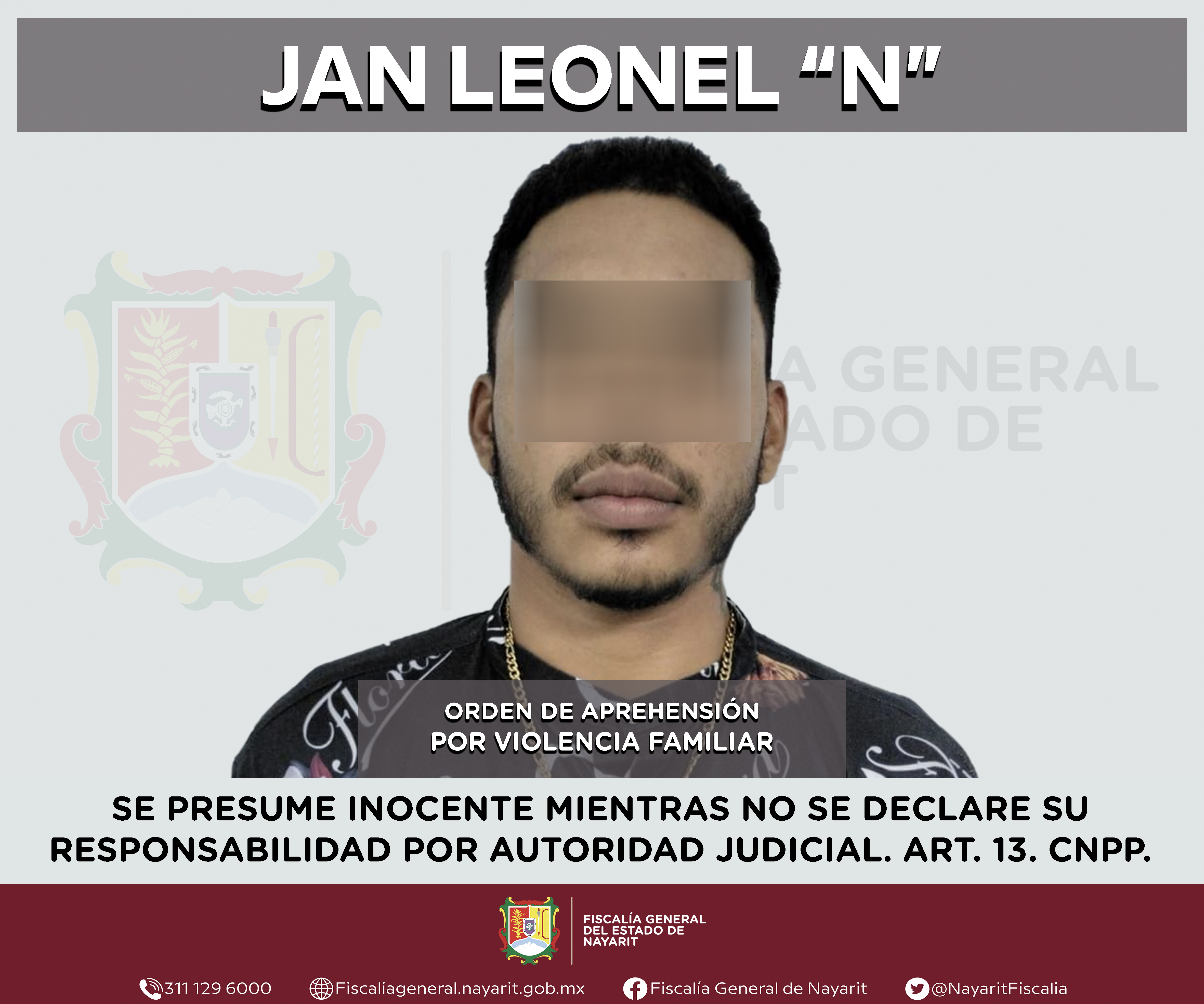 La Fiscalía General del estado de Nayarit a través de la Agencia de Investigación Criminal ejecutó una orden de aprehensión en la ciudad de Tepic contra Jan Leonel “N”, por su presunta participación en hechos que según valoración de la ley en...