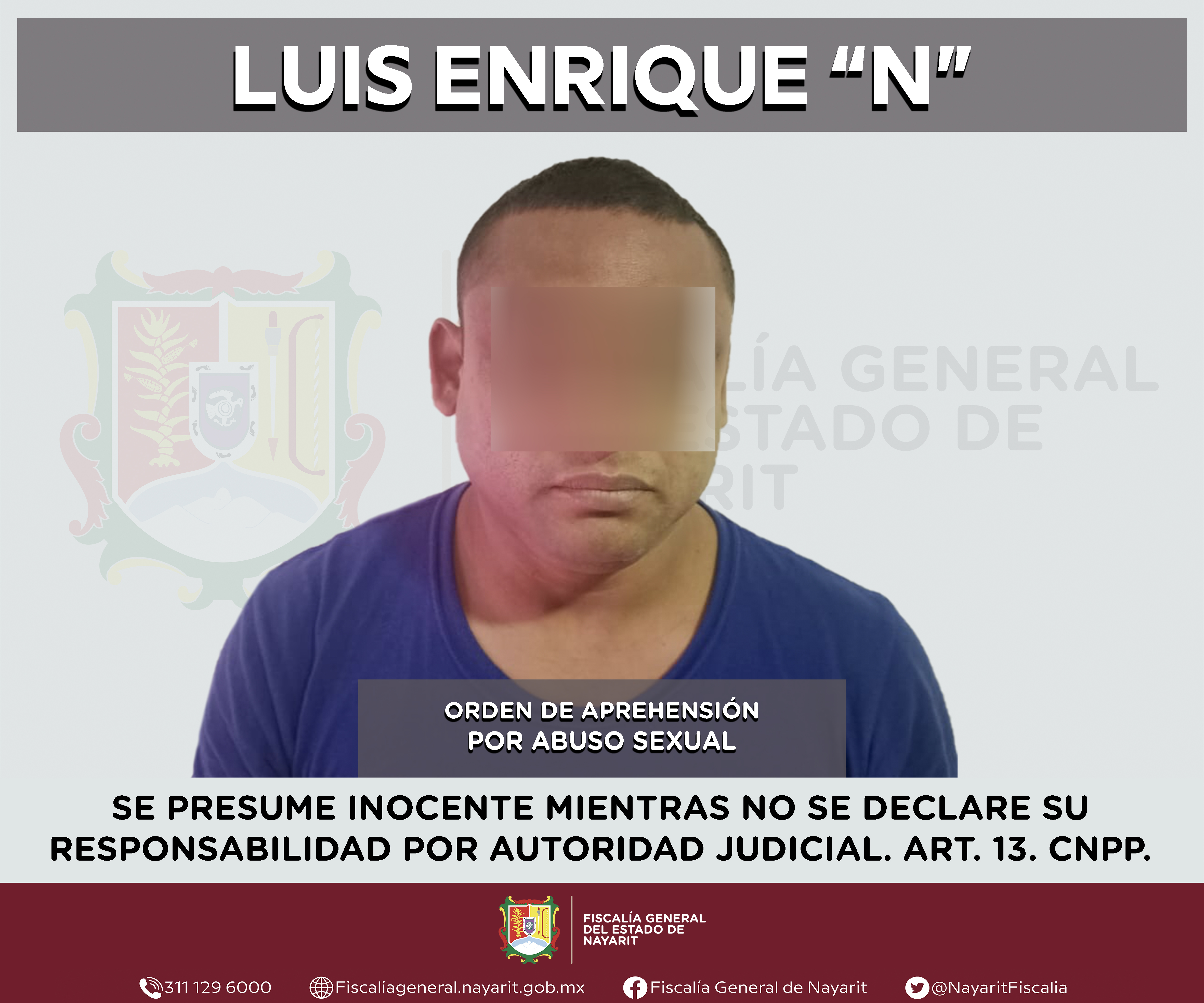 La Fiscalía General del estado de Nayarit a través de la Agencia de Investigación Criminal ejecutó una orden de aprehensión en el municipio de Tecuala contra Luis Enrique “N”, por su presunta participación en hechos que según valoración de la...