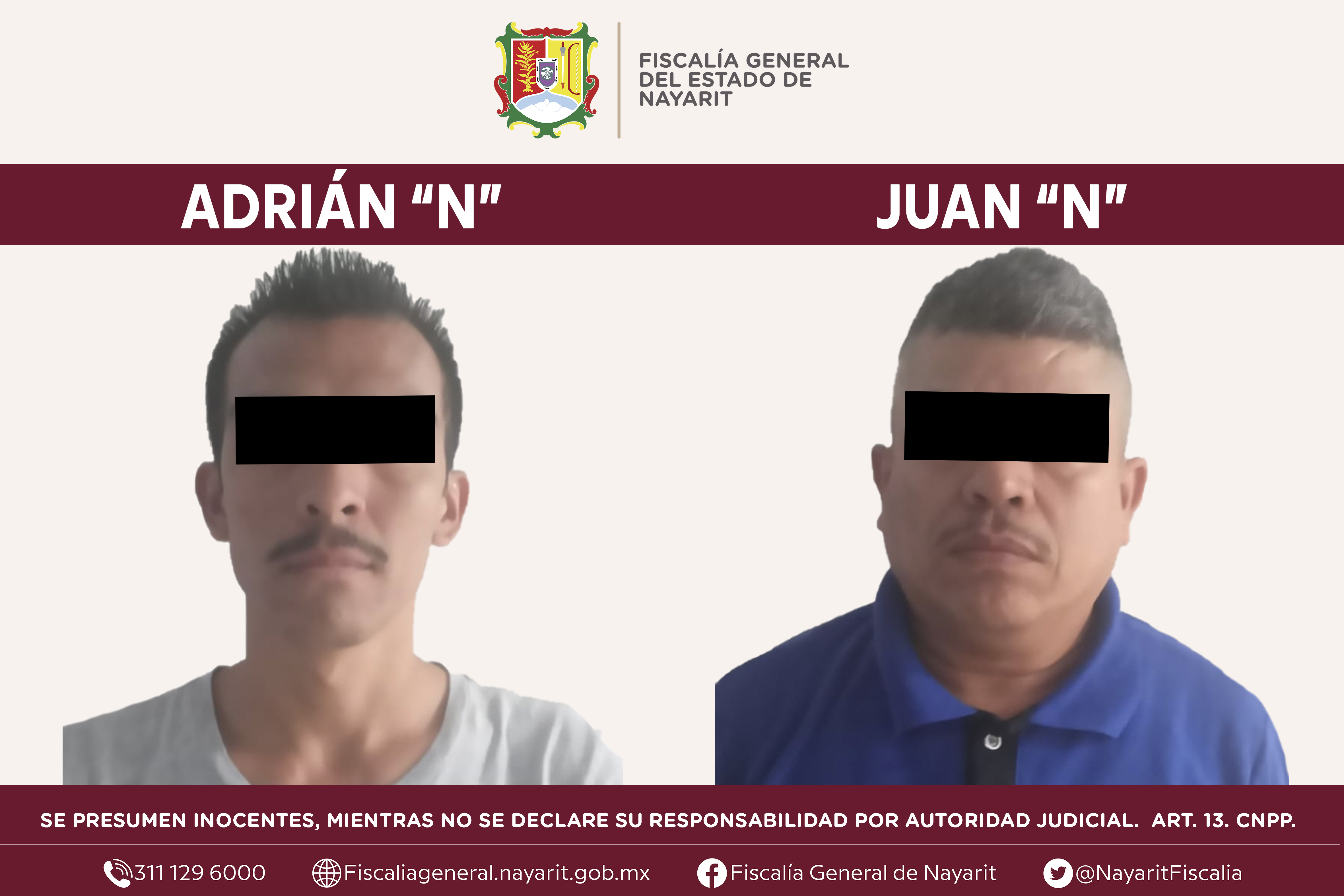 En la capital nayarita, personal de la Agencia de Investigación Criminal de Nayarit dio cumplimiento a una orden de aprehensión contra Adrián “N” y Juan “N”, por su presuntiva responsabilidad penal en hechos que la ley señala como delitos de ...
