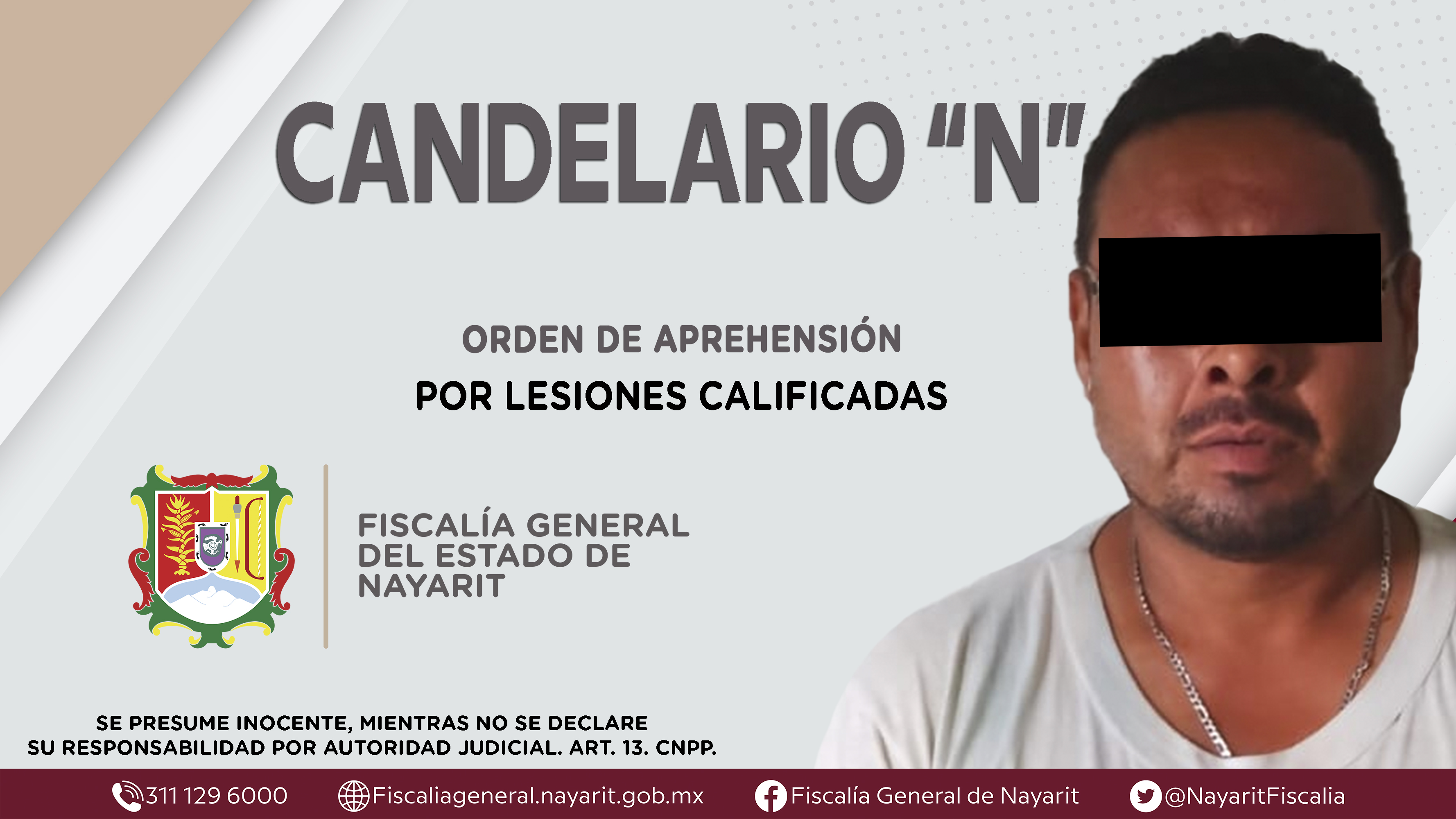 La Fiscalía General del Estado a través de la Agencia de Investigación Criminal dio cumplimiento a una orden de aprehensión en la localidad Jalcocotán, municipio de San Blas contra Candelario “N”, por su presunta participación en hechos que seg...