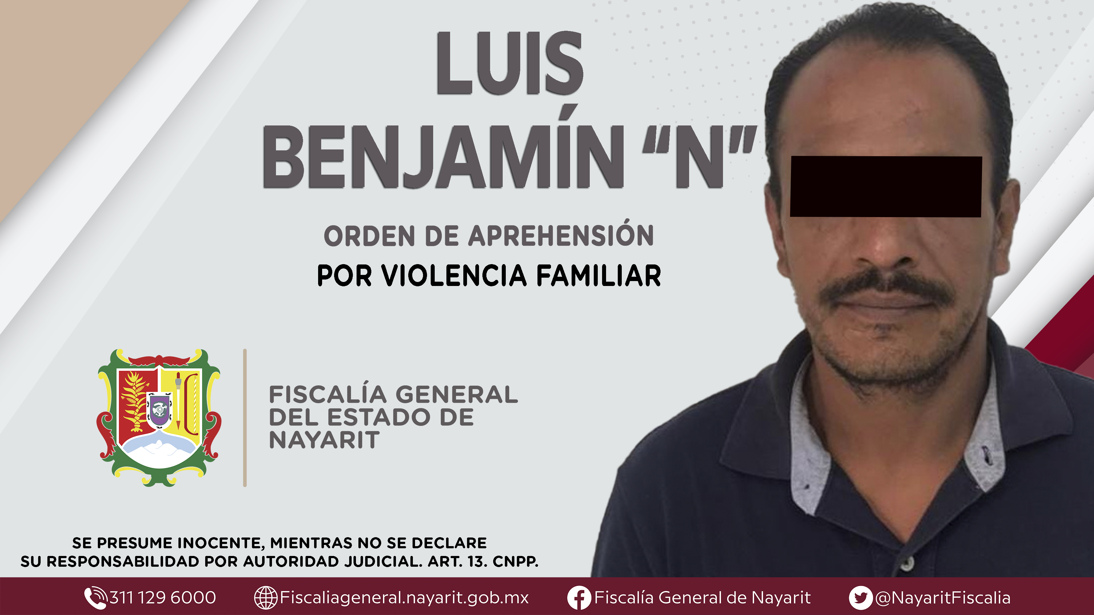 Elementos de la Agencia de Investigación Criminal cumplimentaron una orden de aprehensión en la ciudad de Tepic contra Luis Benjamín “N”, por su presunta participación en hechos que según apreciación de la ley configuran el delito de violencia ...