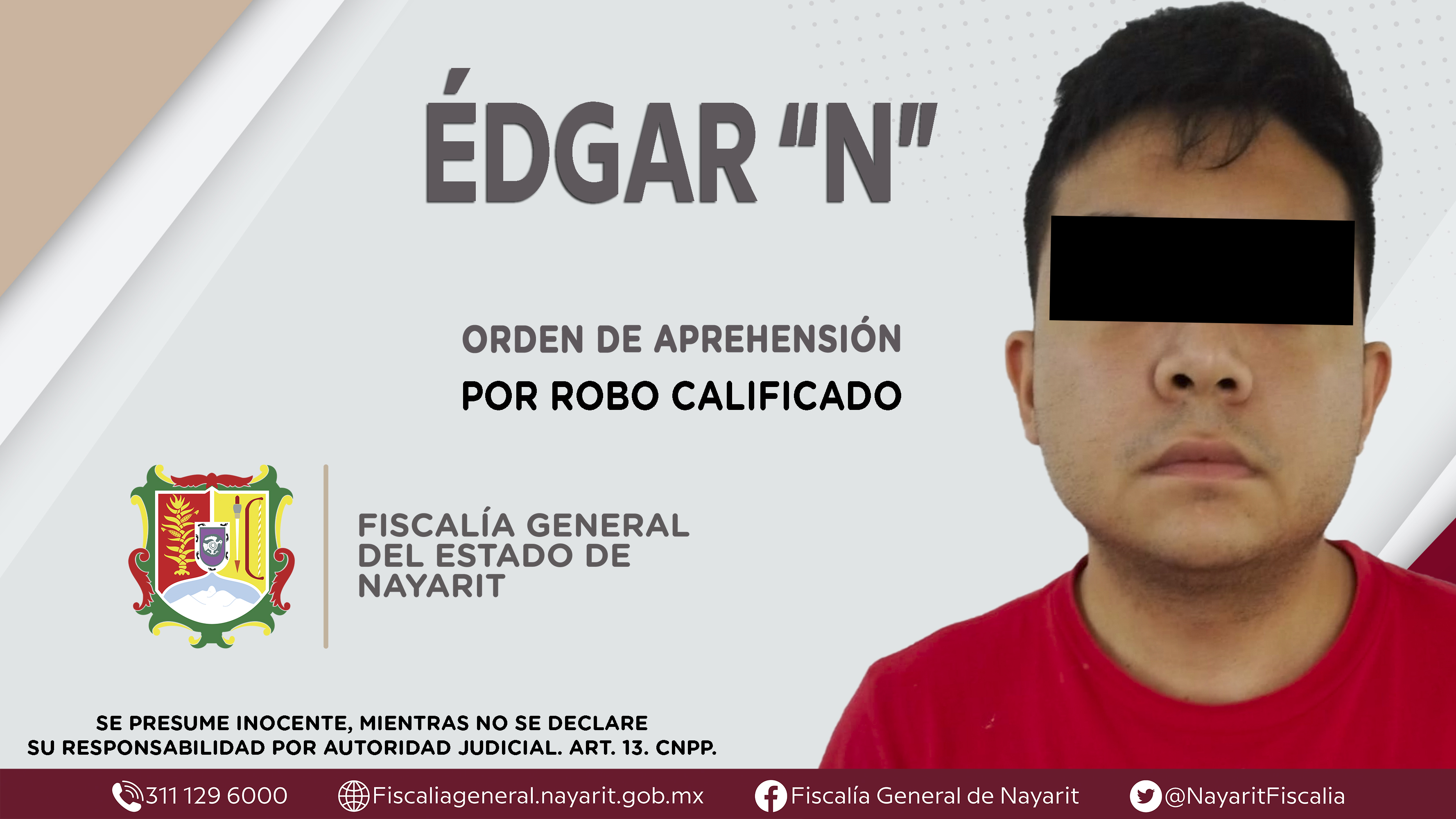 La Fiscalía General del Estado a través de la Agencia de Investigación Criminal dio cumplimiento a una orden de aprehensión en la ciudad de Tepic contra Édgar “N”, por su presunta participación en hechos que según apreciación de la ley config...
