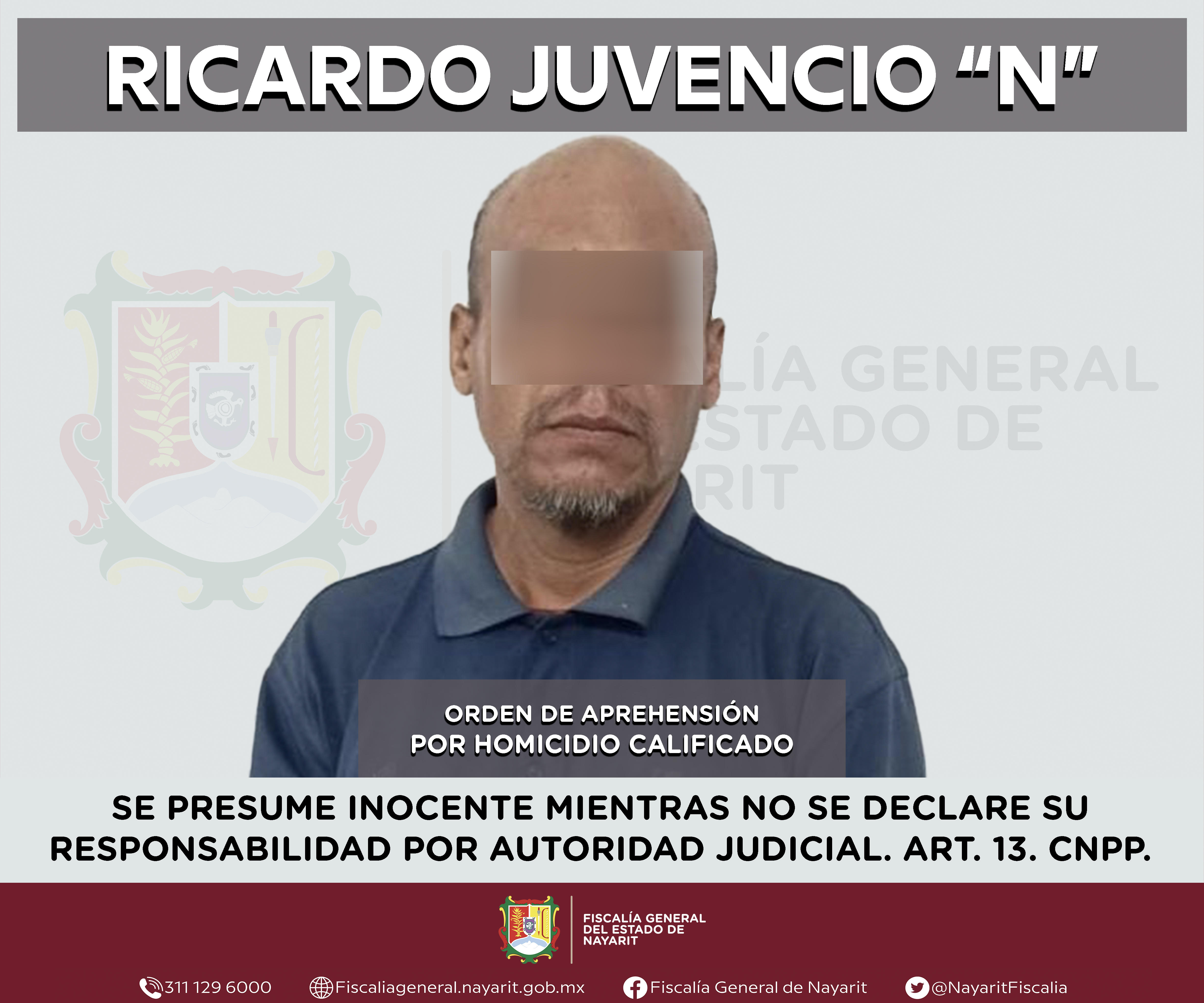 Con la colaboración de la Fiscalía General del estado de Jalisco se ejecutó una orden de aprehensión en la ciudad de Puerto Vallarta, Jalisco contra Ricardo Juvencio “N”, por su presunta participación en hechos que según apreciación de la ley ...