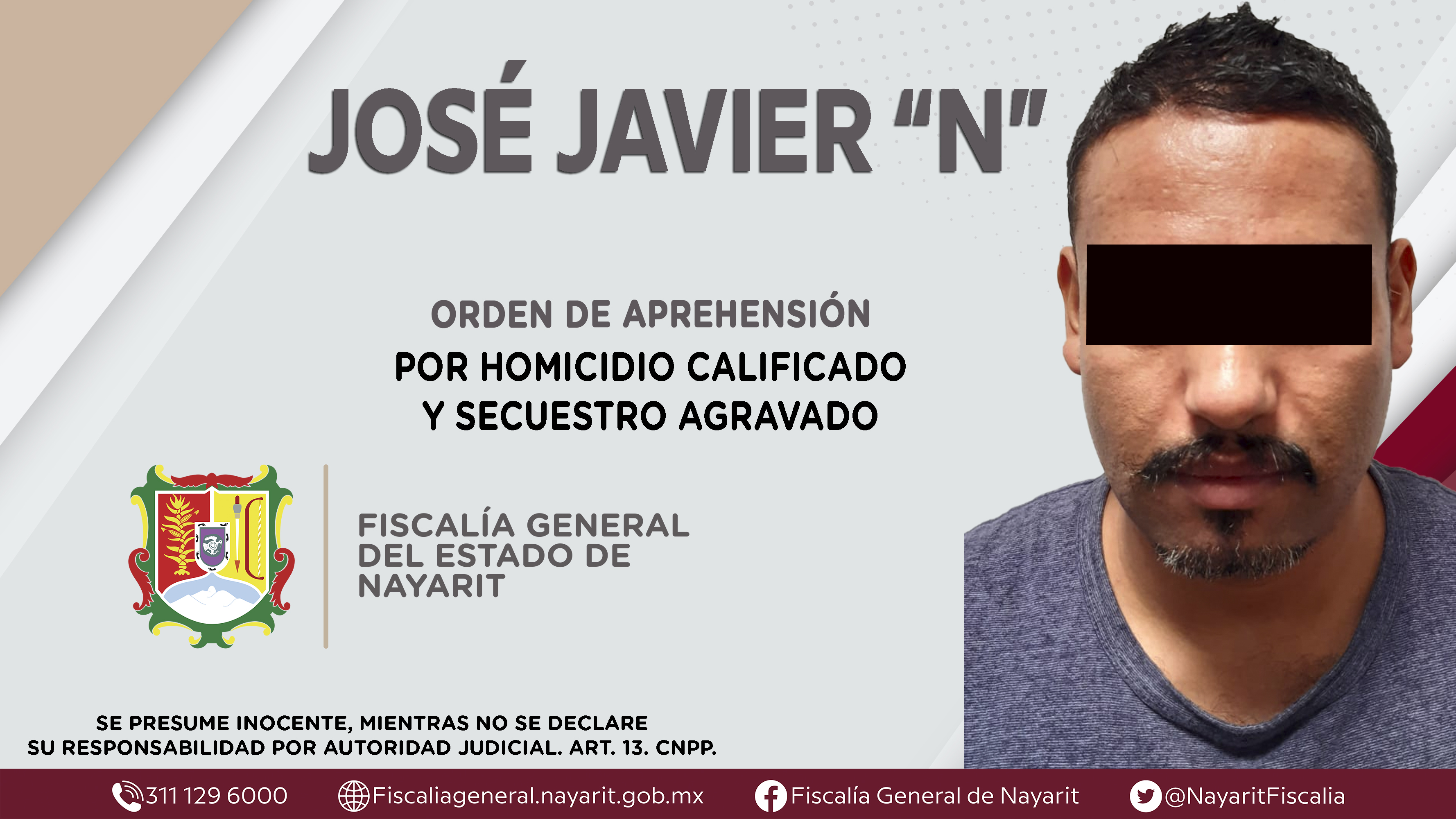En colaboración con la Fiscalía General del estado de Zacatecas, elementos de la Agencia de Investigación Criminal de Nayarit dieron cumplimiento en la ciudad de Tepic a una orden de aprehensión que se obsequió contra José Javier “N”, por su te...