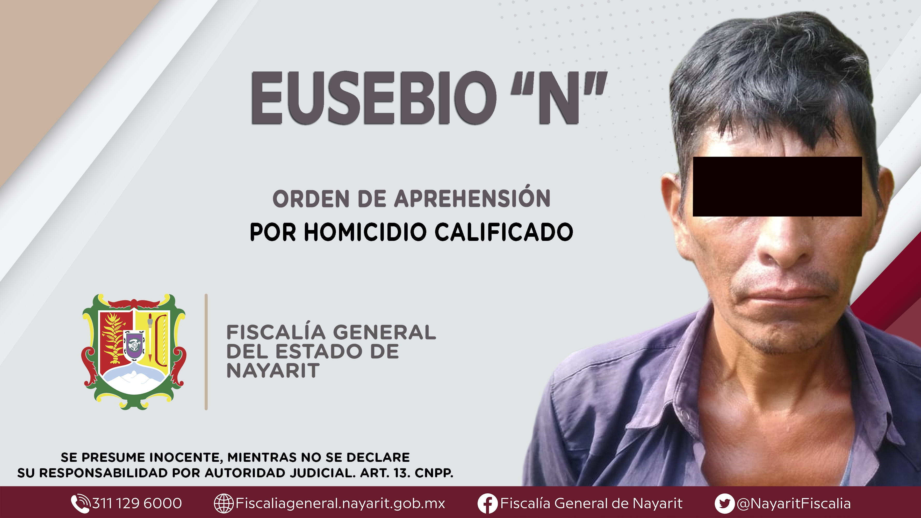 Elementos de la Agencia de Investigación Criminal cumplimentaron una orden de aprehensión en el municipio Del Nayar contra Eusebio “N”, por su presunta participación en hechos que según apreciación de la ley configuran el delito de homicidio cal...