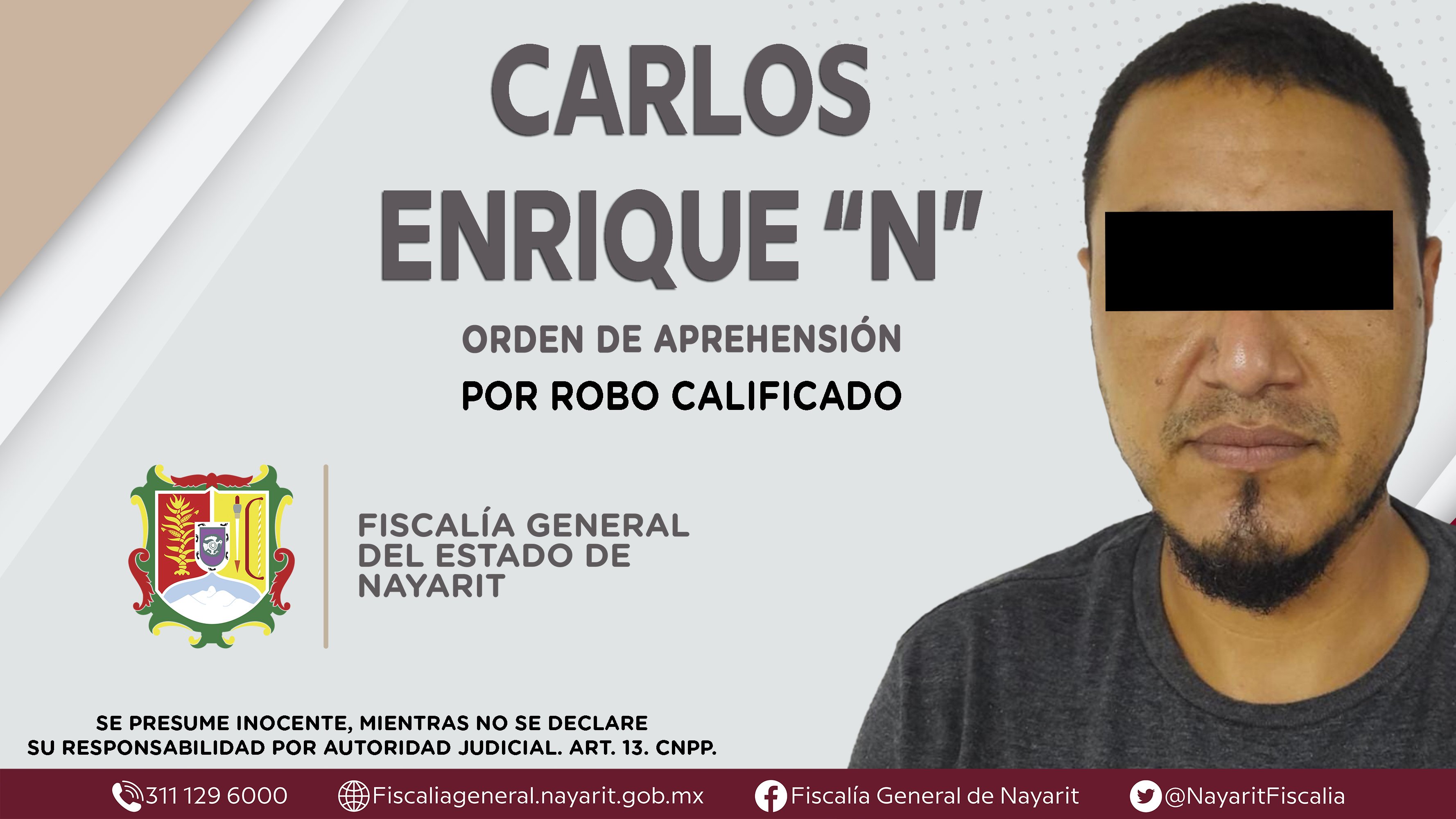 Elementos de la Agencia de Investigación Criminal de Nayarit ejecutaron una orden de aprehensión en la ciudad de Tepic contra Carlos Enrique “N”, por su presunta participación en hechos que según apreciación de la ley encuadran el delito de robo...