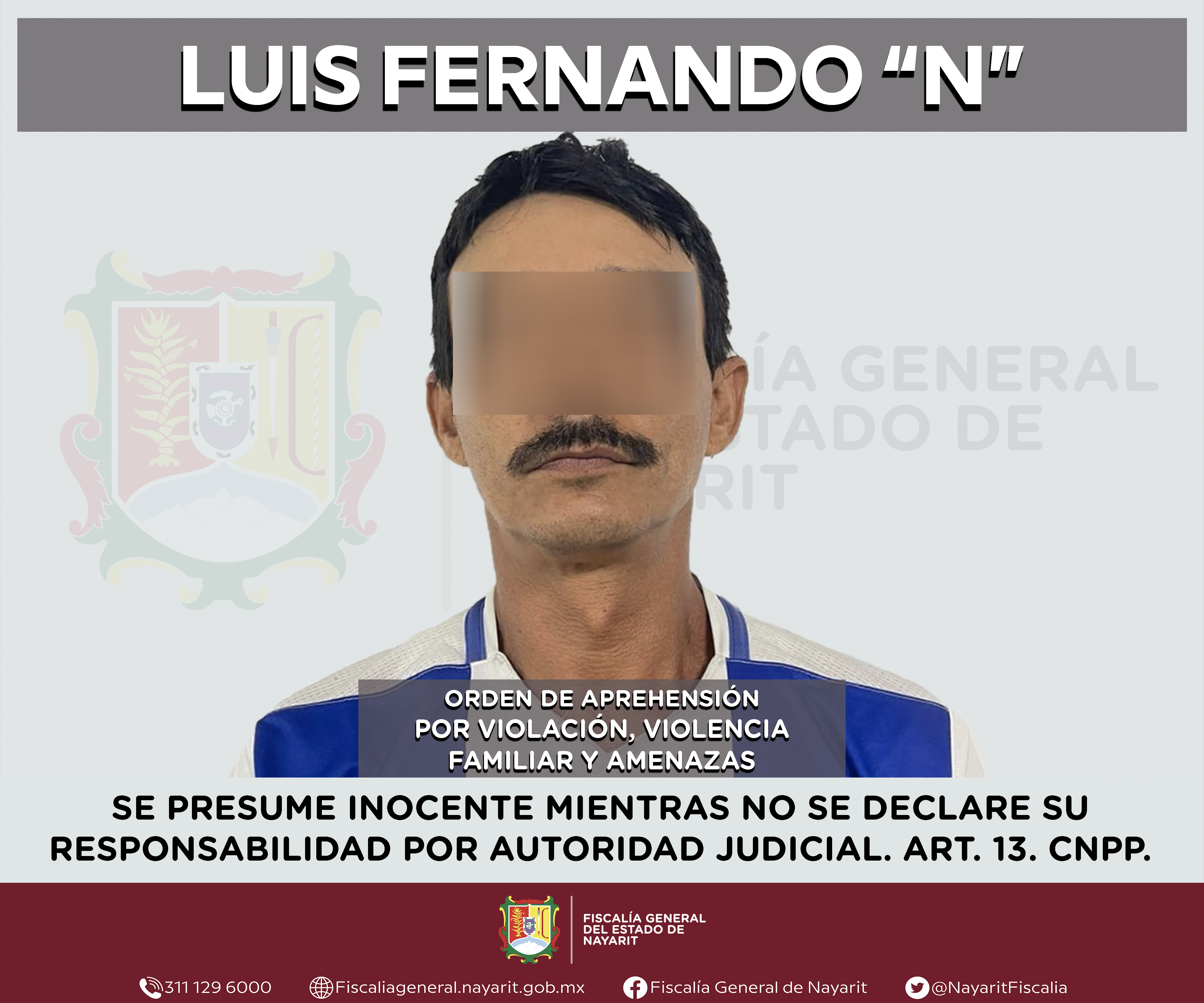 La Fiscalía General del estado de Nayarit a través de la Agencia de Investigación Criminal ejecutó una orden de aprehensión en la ciudad de Tepic contra Luis Fernando “N”, por su presunta participación en hechos que según valoración de la ley...