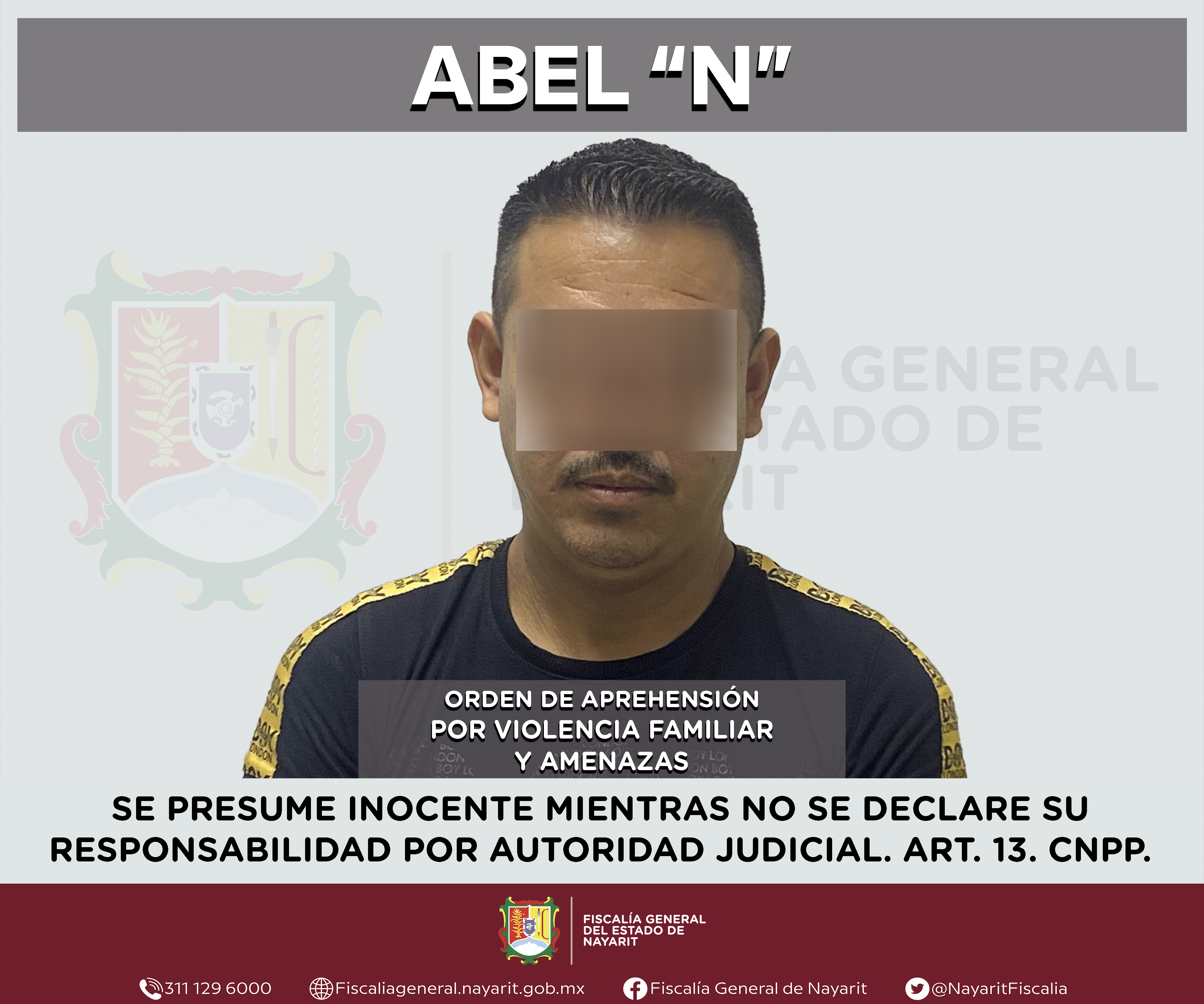 La Fiscalía General del estado de Nayarit a través de la Agencia de Investigación Criminal ejecutó una orden de aprehensión en el municipio de Santiago Ixcuintla contra Abel “N”, por su presunta participación en hechos que según valoración de...