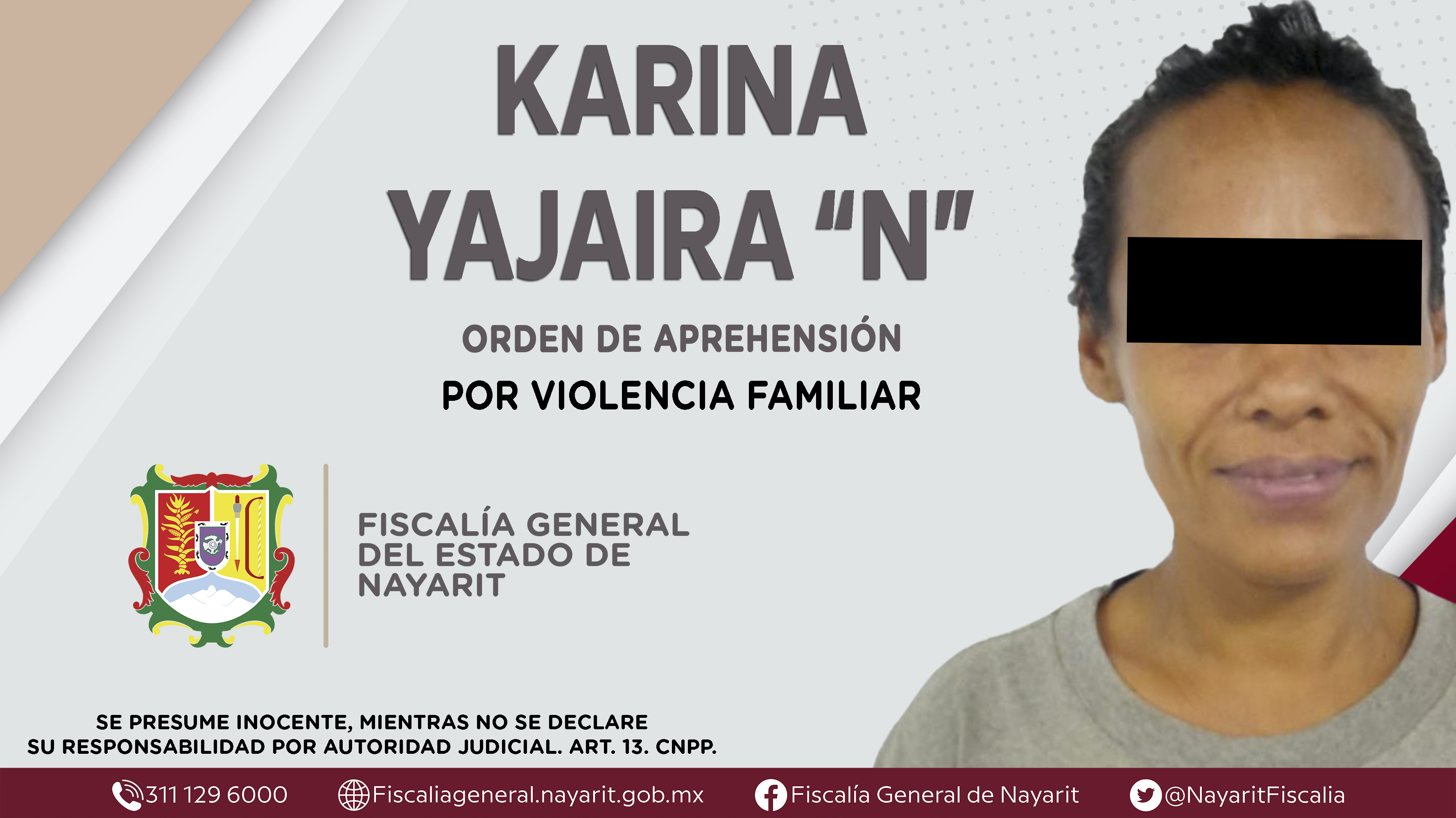 Elementos de la Agencia de Investigación Criminal de Nayarit ejecutaron una orden de aprehensión en la ciudad de Tepic contra Karina Yajaira “N”, por su presunta participación en hechos que según apreciación de la ley encuadran el delito de viol...