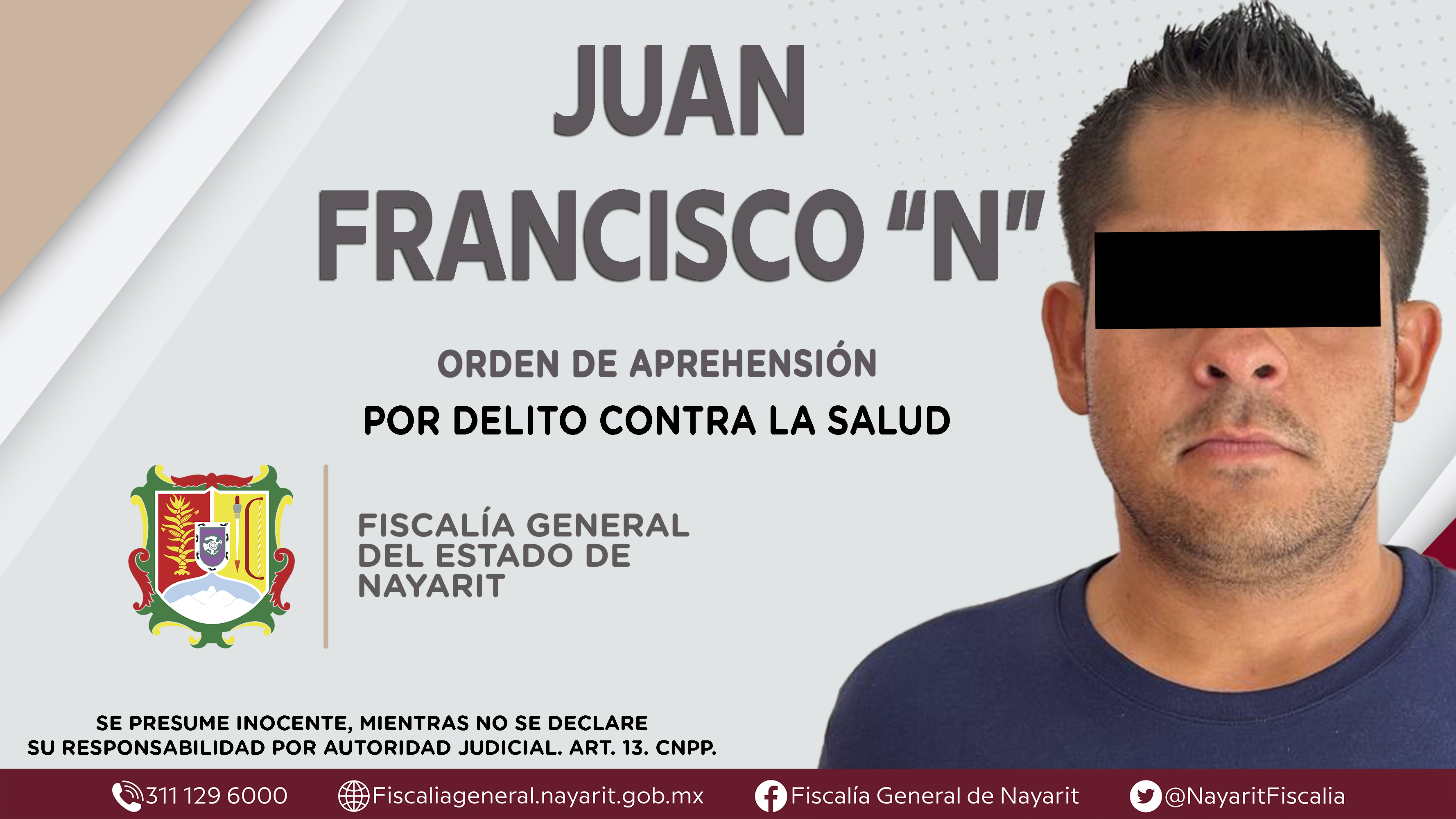 La Fiscalía General del Estado a través de la Agencia de Investigación Criminal dio cumplimiento a una orden de aprehensión en la capital nayarita contra Juan Francisco “N”, por su presunta participación en hechos que según apreciación de la l...
