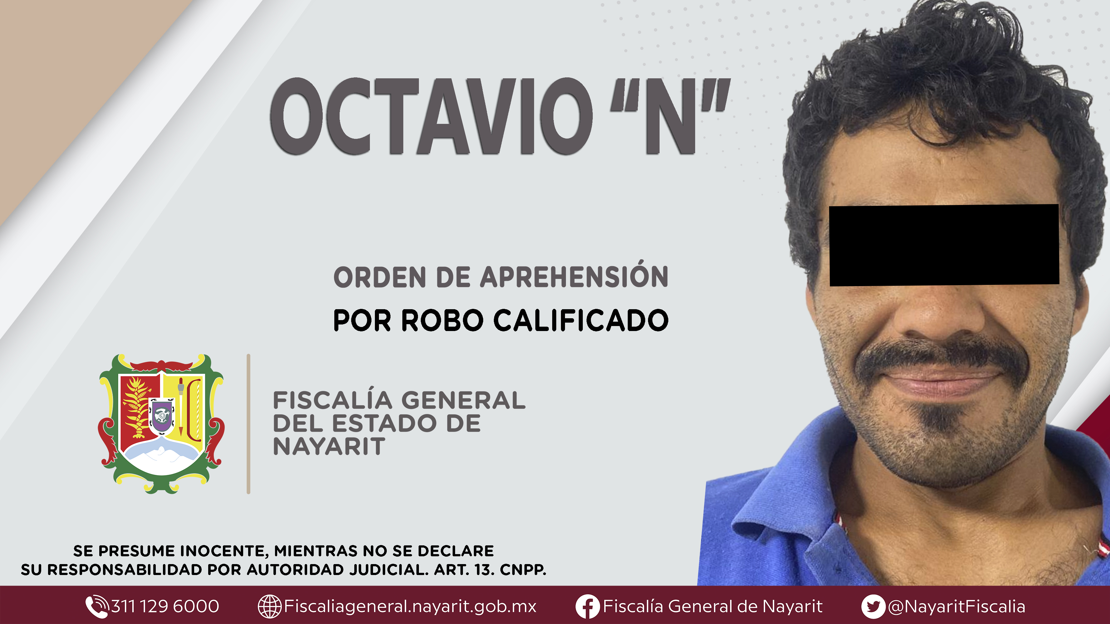 Elementos de la Agencia de Investigación Criminal de Nayarit ejecutaron una orden de aprehensión en la ciudad de Tepic contra Octavio “N”, por su presunta participación en hechos que según apreciación de la ley encuadran el delito de robo califi...