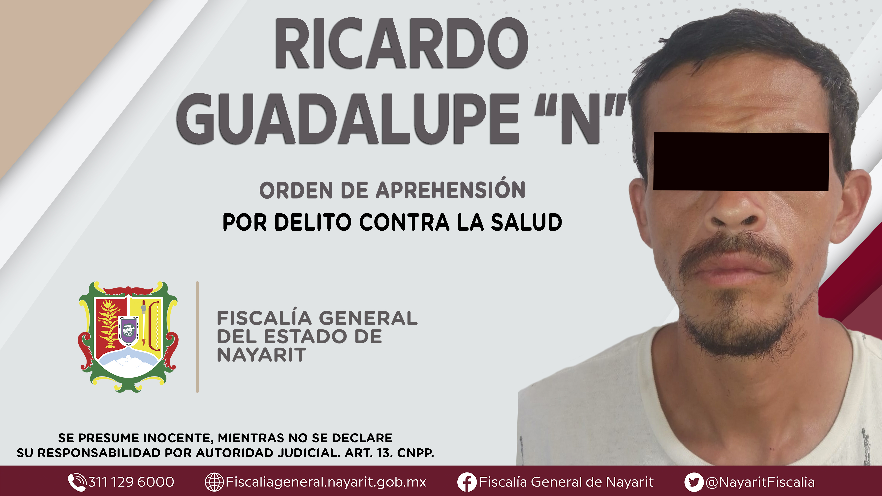 Elementos de la Agencia de Investigación Criminal cumplimentaron una orden de aprehensión en la ciudad de Tepic contra Ricardo Guadalupe “N”, por su presuntiva responsabilidad penal en hechos que la ley califica como delito contra la salud en su mo...
