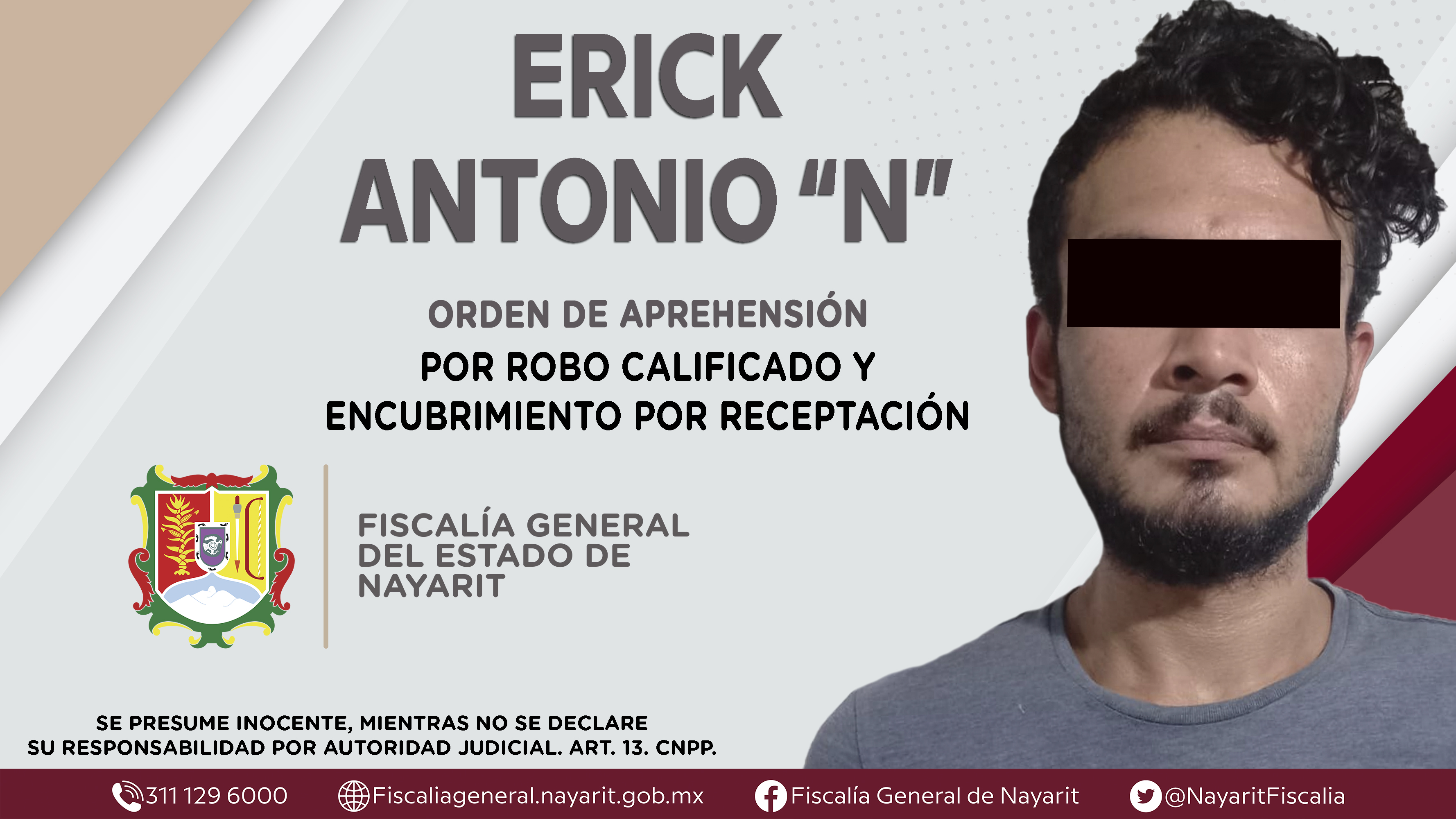 La Fiscalía General de Nayarit a través de la Agencia de Investigación Criminal ejecutó una orden de aprehensión contra Erick Antonio “N”, por su presunta participación en hechos que según apreciación de la ley encuadran los delitos de robo c...