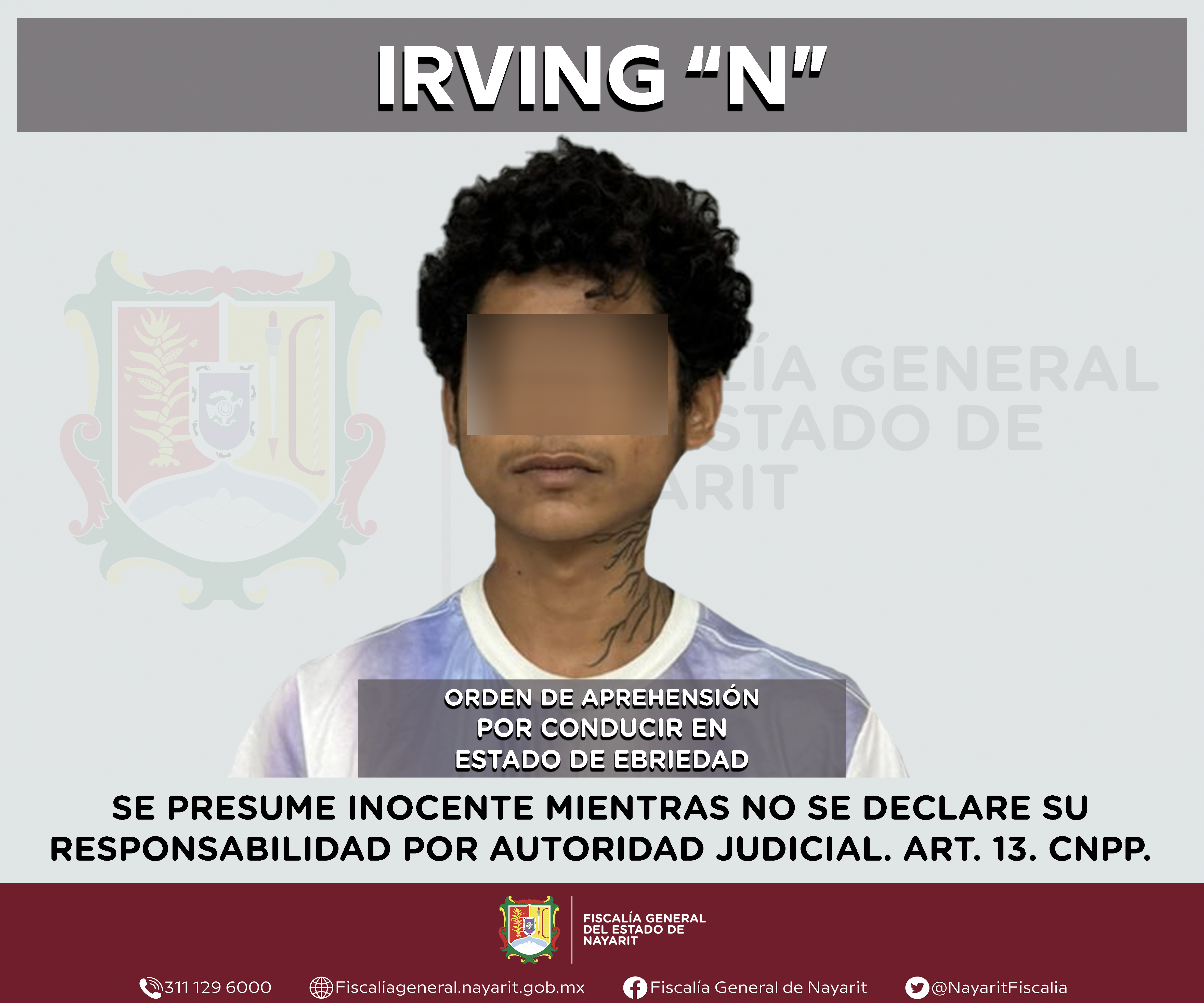 La Fiscalía General del estado de Nayarit a través de la Agencia de Investigación Criminal ejecutó una orden de aprehensión en el municipio de Bahía de Banderas contra Irving “N”, por su presunta participación en hechos que según valoración ...