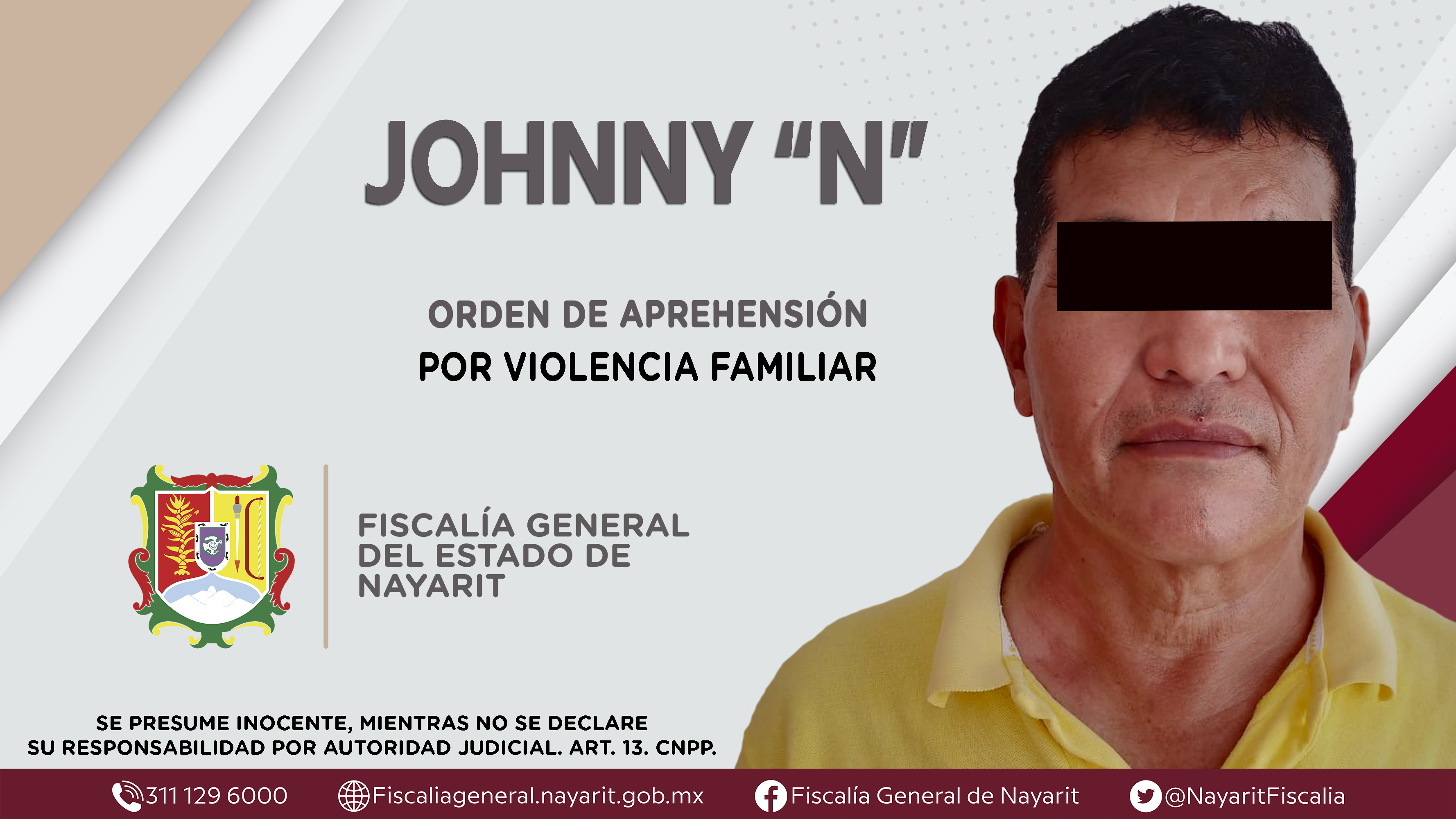 Elementos de la Agencia de Investigación Criminal de Nayarit ejecutaron una orden de aprehensión en la ciudad de Tepic contra Johnny “N”, por su probable participación en hechos que según la ley configuran el delito de violencia familiar, cometid...
