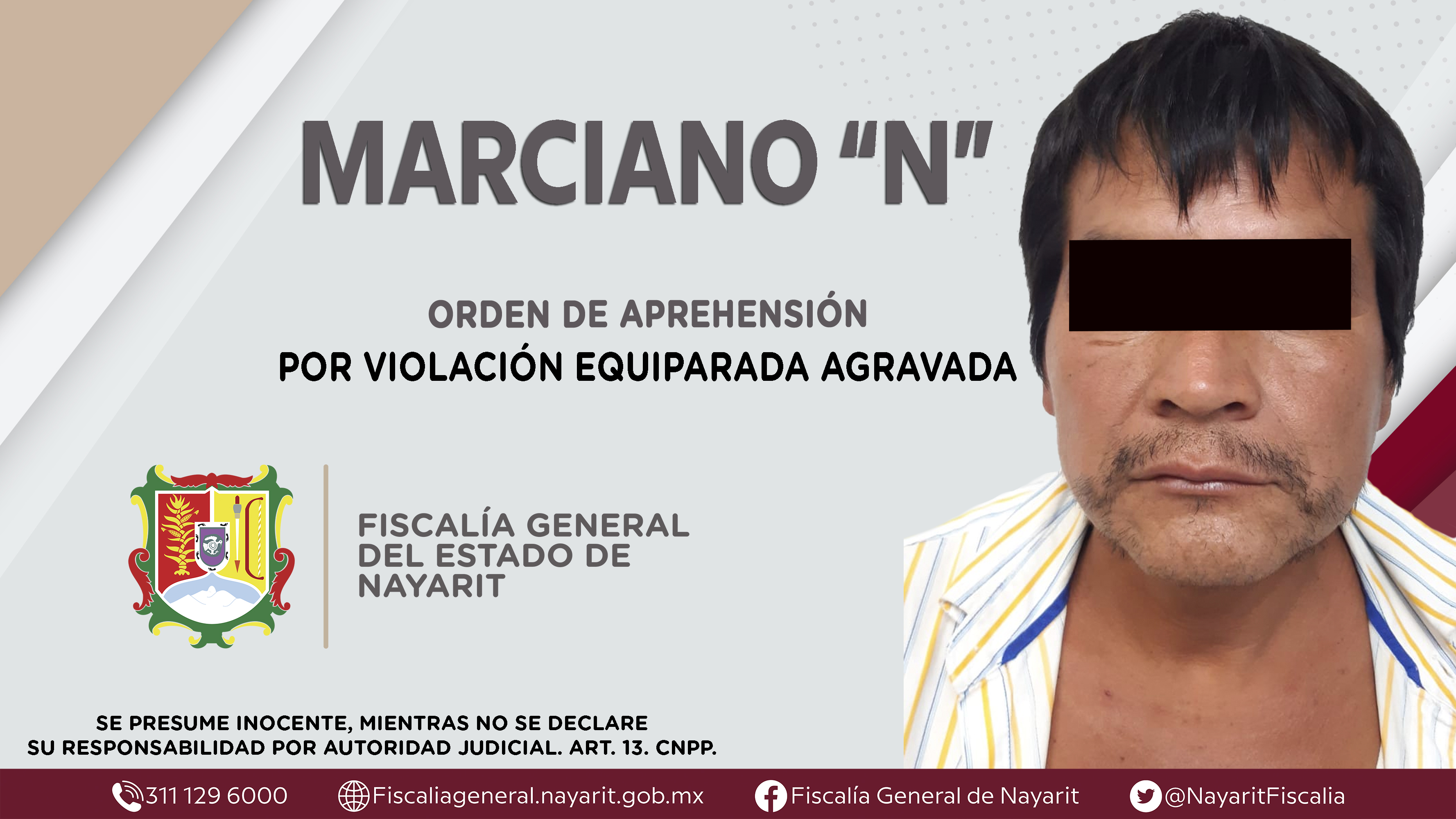 La Fiscalía General de Nayarit a través de la Agencia de Investigación Criminal ejecutó una orden de aprehensión contra Marciano “N”, por su presunta participación en hechos que según apreciación de la ley encuadran el delito de violación eq...