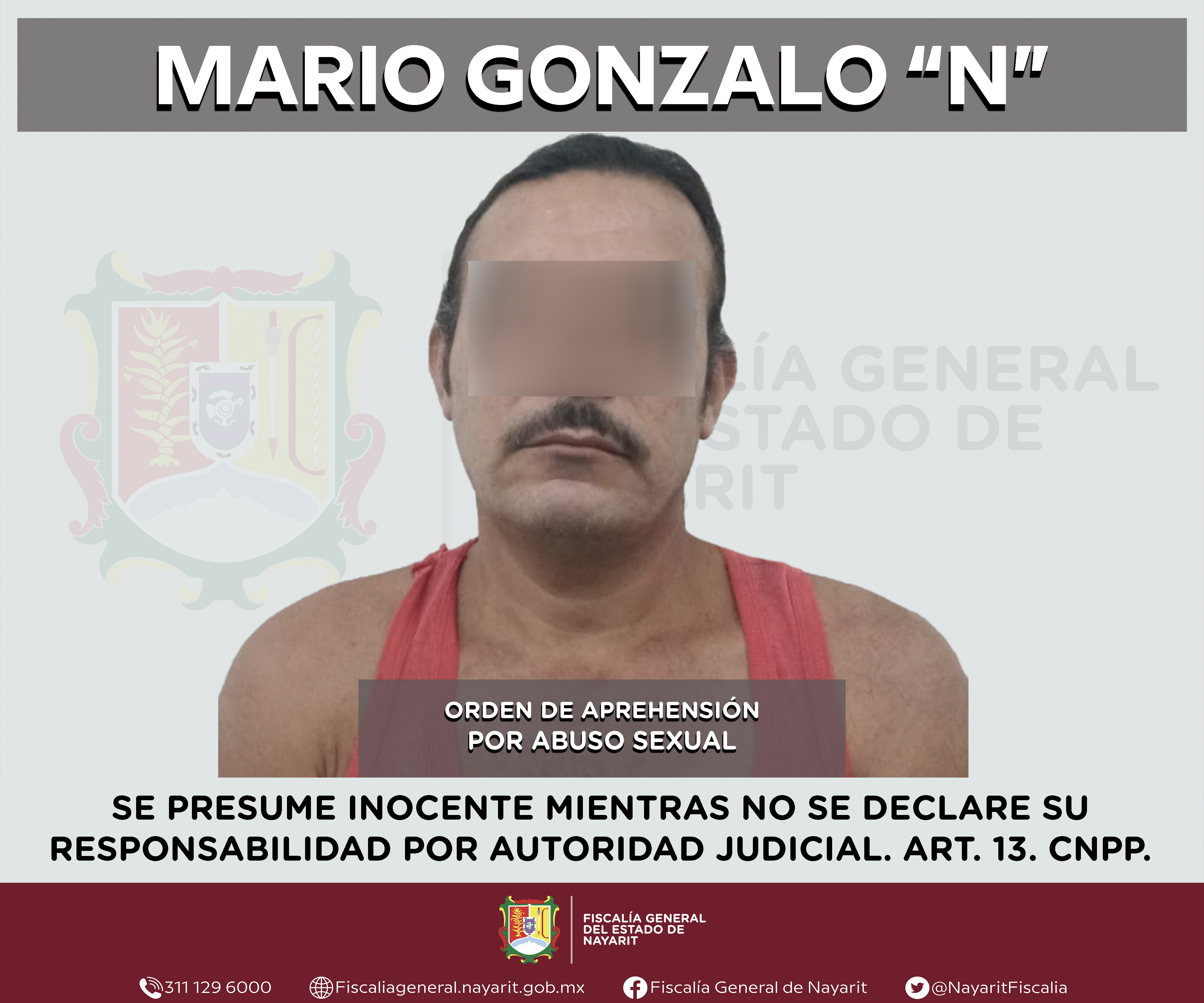 La Fiscalía General del estado de Nayarit a través de la Agencia de Investigación Criminal ejecutó una orden de aprehensión en la localidad La Peñita de Jaltemba, municipio de Compostela contra Mario Gonzalo “N”, por su presunta participación ...