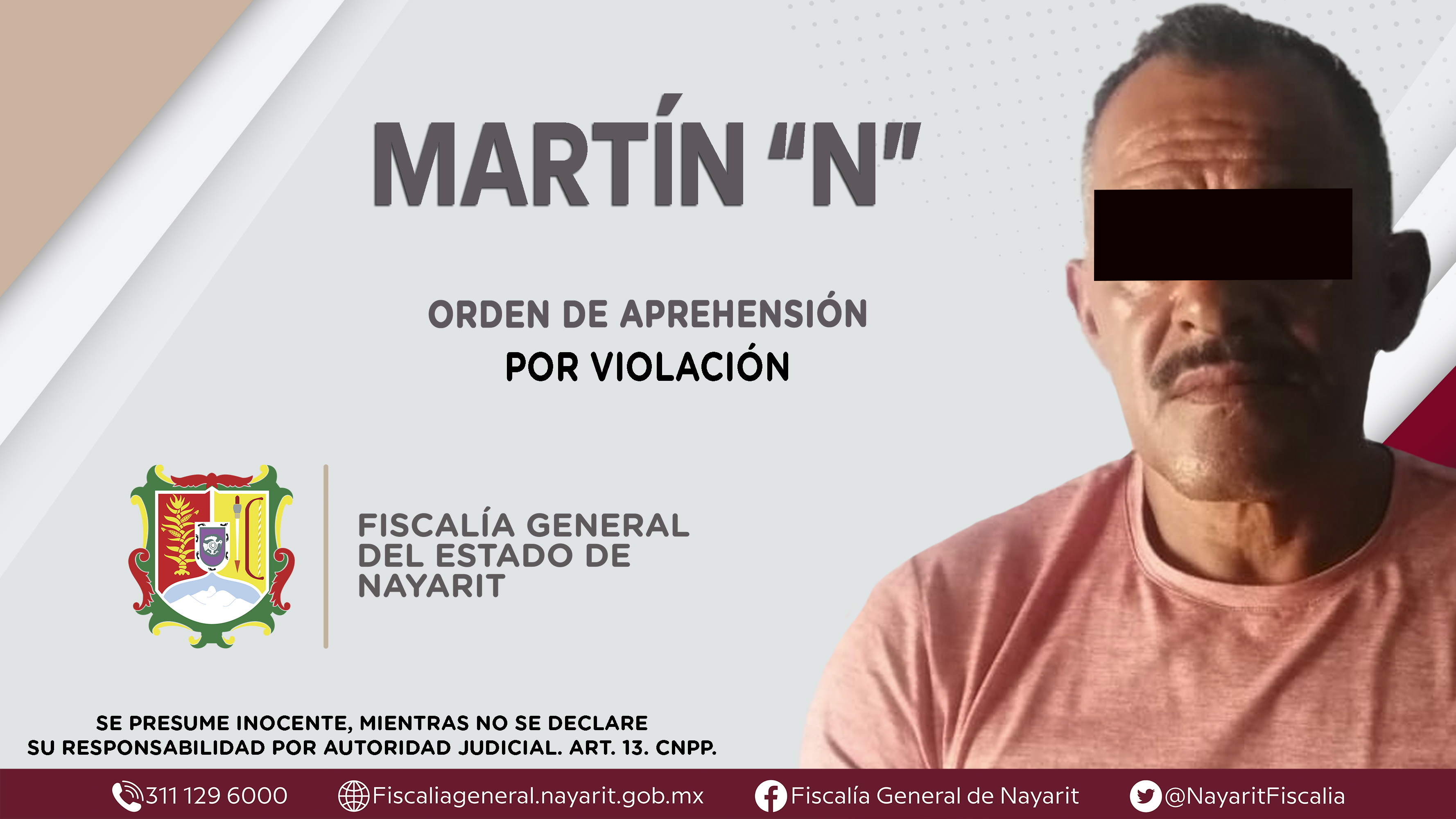 Elementos de la Agencia de Investigación Criminal de Nayarit ejecutaron una orden de aprehensión en el municipio de Xalisco contra Martín “N”, por su probable participación en hechos que según la ley configuran el delito de violación, cometido ...