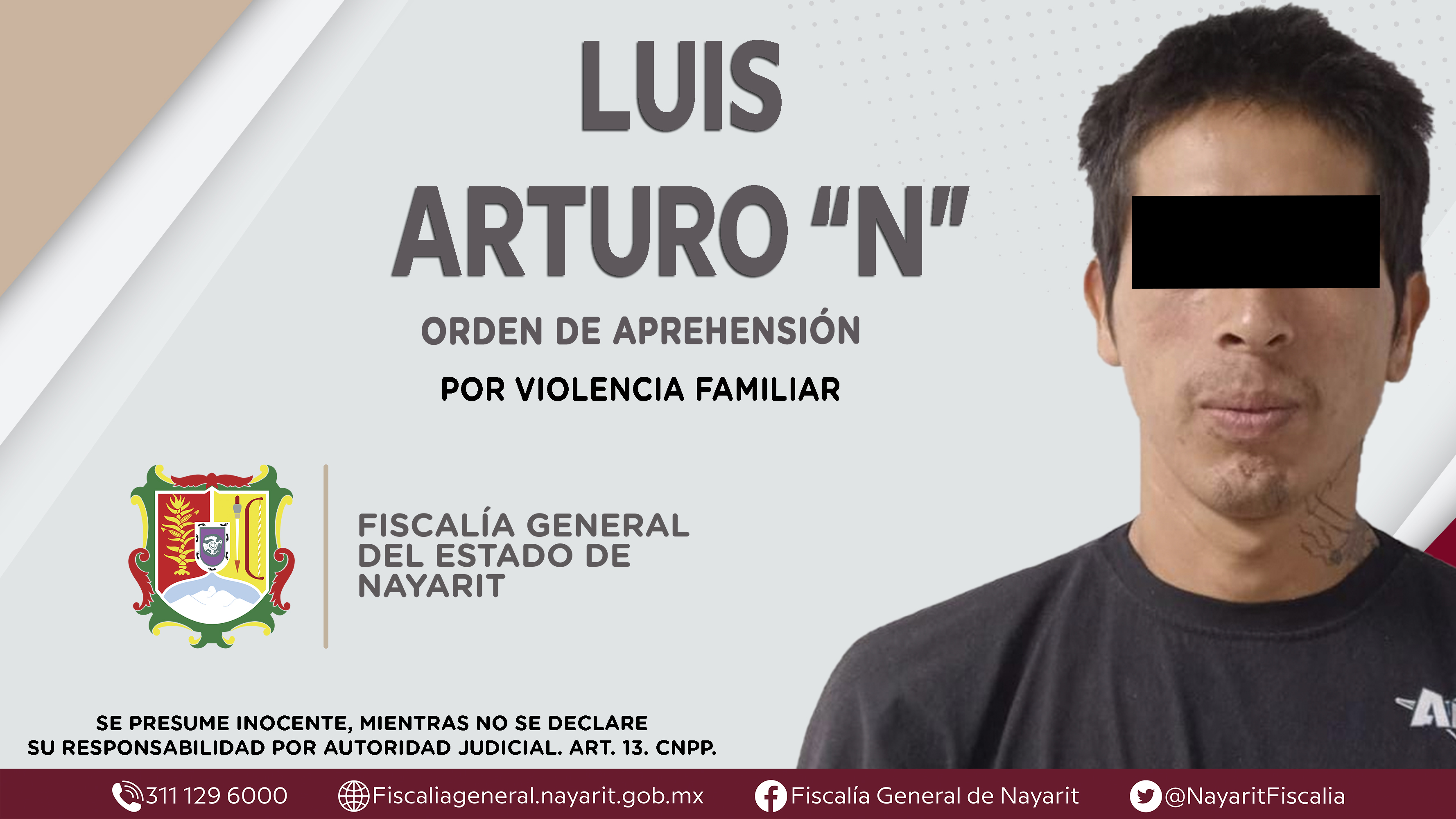 La Fiscalía General del Estado a través de la Agencia de Investigación Criminal dio cumplimiento a una orden de aprehensión en la ciudad de Tepic contra Luis Arturo “N”, por su presunta participación en hechos que según apreciación de la ley e...