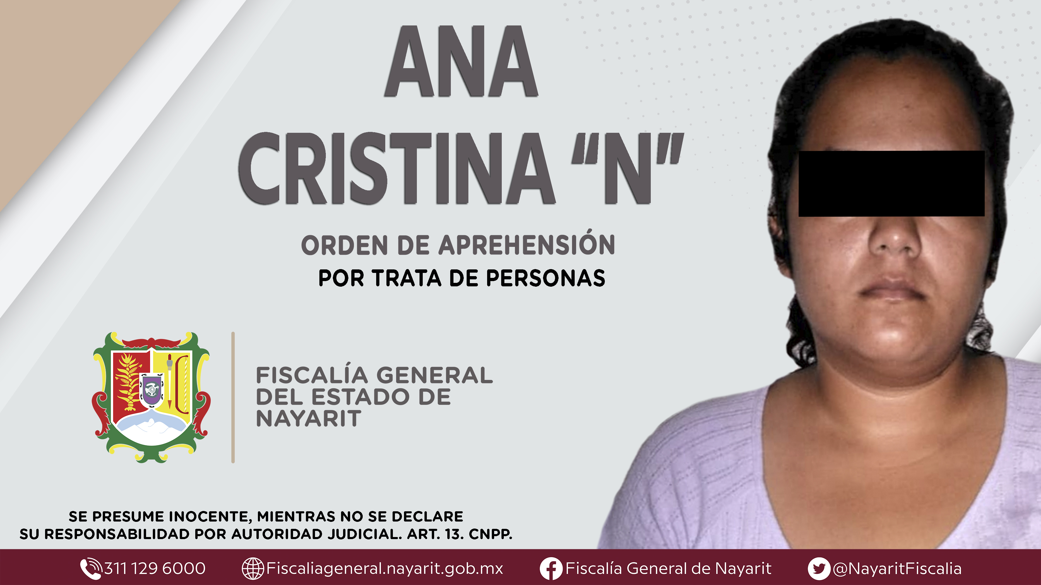 Elementos de la Agencia de Investigación Criminal de Nayarit ejecutaron una orden de aprehensión en el interior del Centro de Reinserción Social Femenil -CERESOFE- \"La Esperanza” contra Ana Cristina “N”