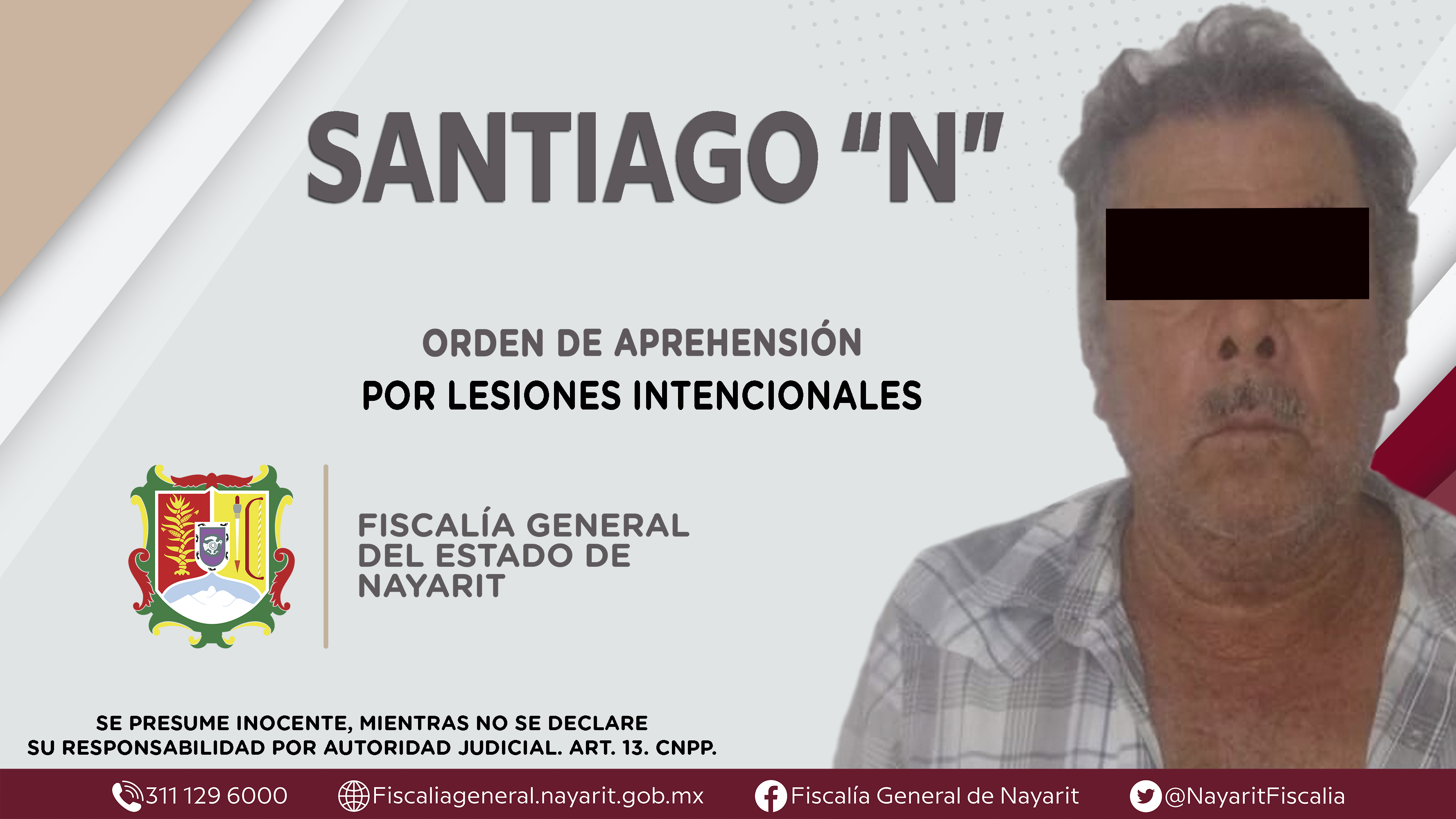 En el poblado El Limón, municipio de Tecuala, elementos de la Agencia de Investigación Criminal de Nayarit dieron cumplimiento a una orden de aprehensión que se obsequió contra Santiago “N”, por su probable participación en hechos que la ley cal...