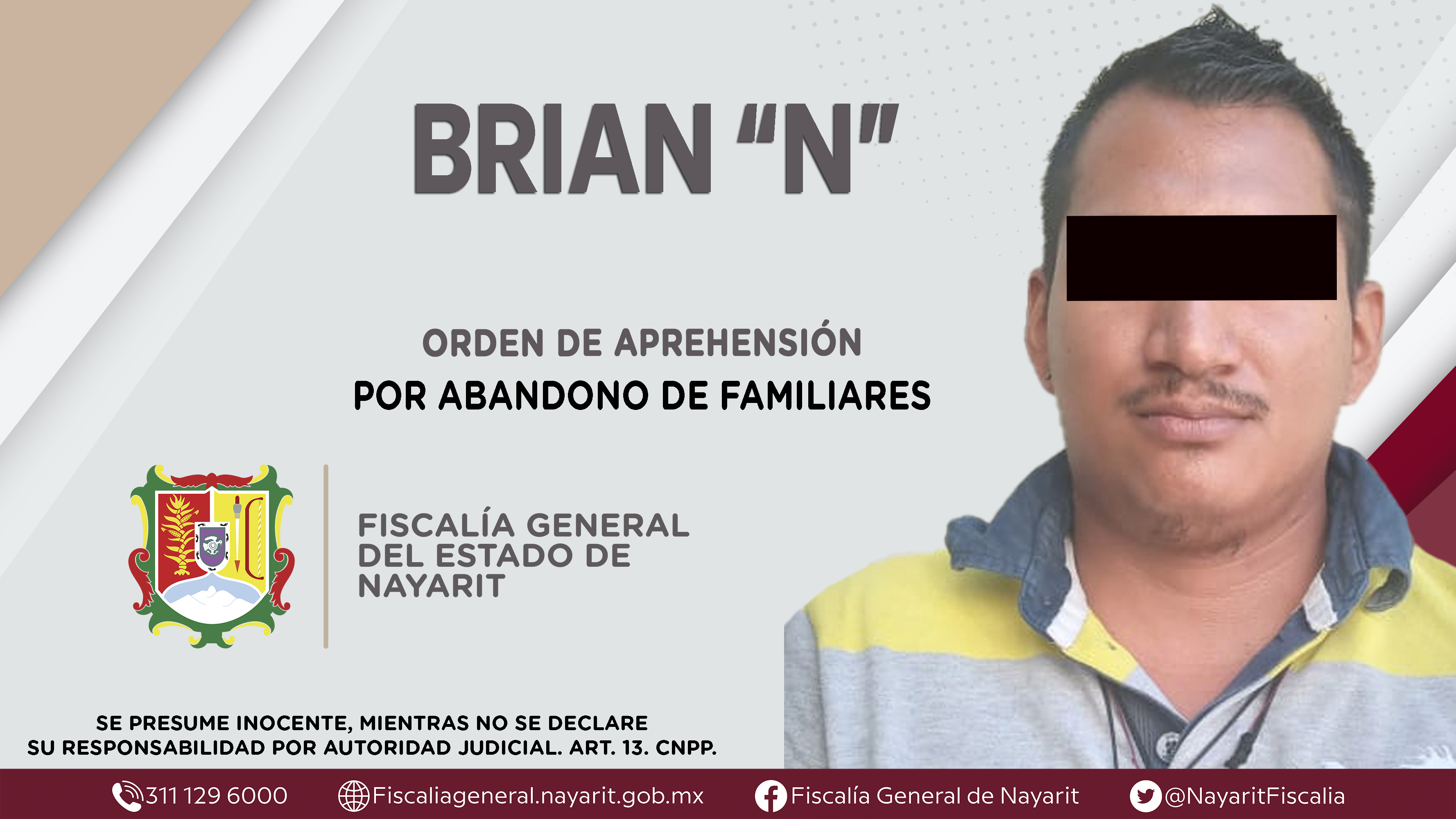 La Fiscalía General de Nayarit a través de la Agencia de Investigación Criminal ejecutó una orden de aprehensión contra Brian “N”, por su presunta participación en hechos que según apreciación de la ley encuadran el delito de abandono de fami...