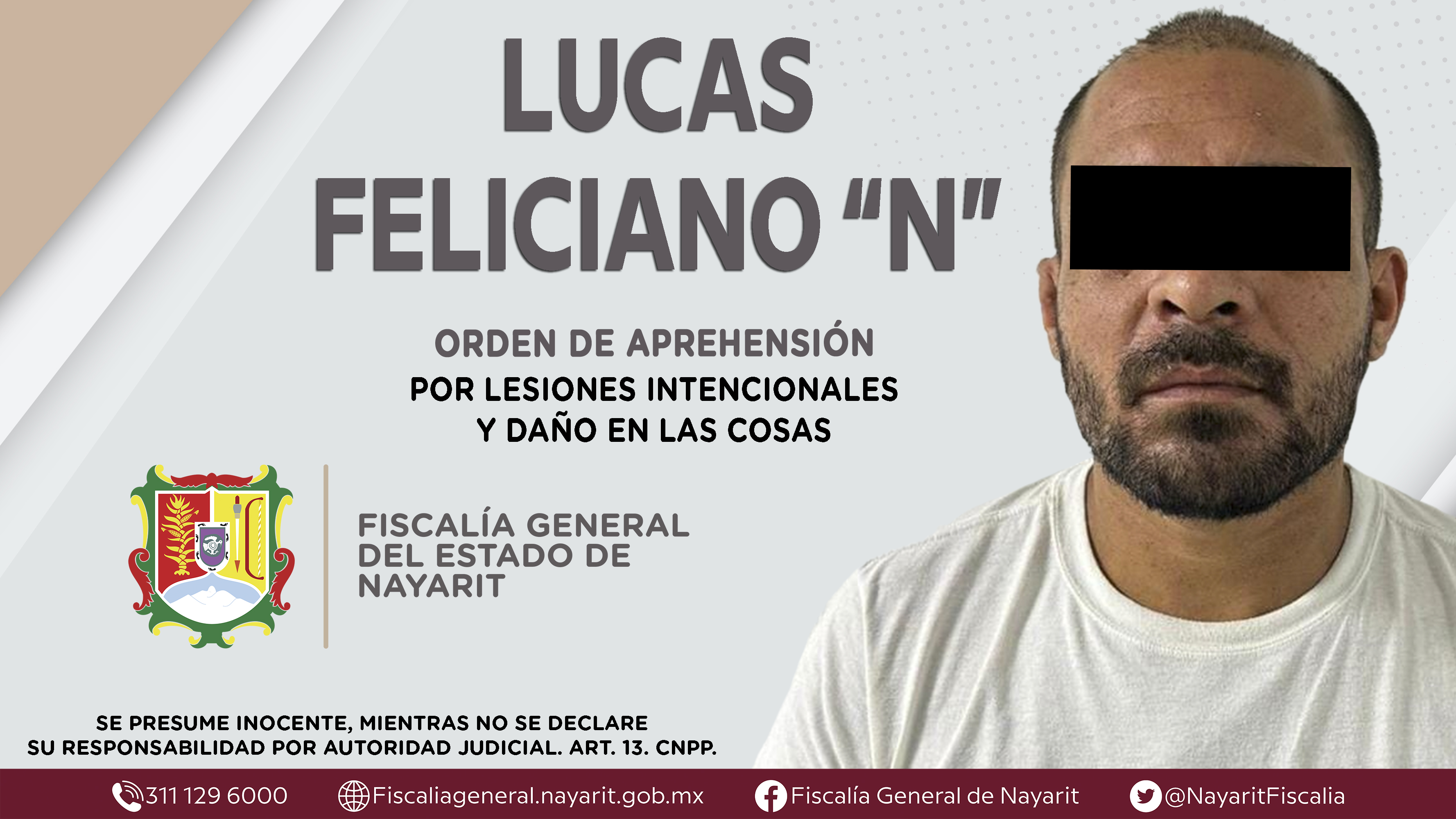 La Fiscalía General del Estado a través de la Agencia de Investigación Criminal dio cumplimiento a una orden de aprehensión en la ciudad de Tepic contra Lucas Feliciano “N”, por su presunta participación en hechos que según apreciación de la l...