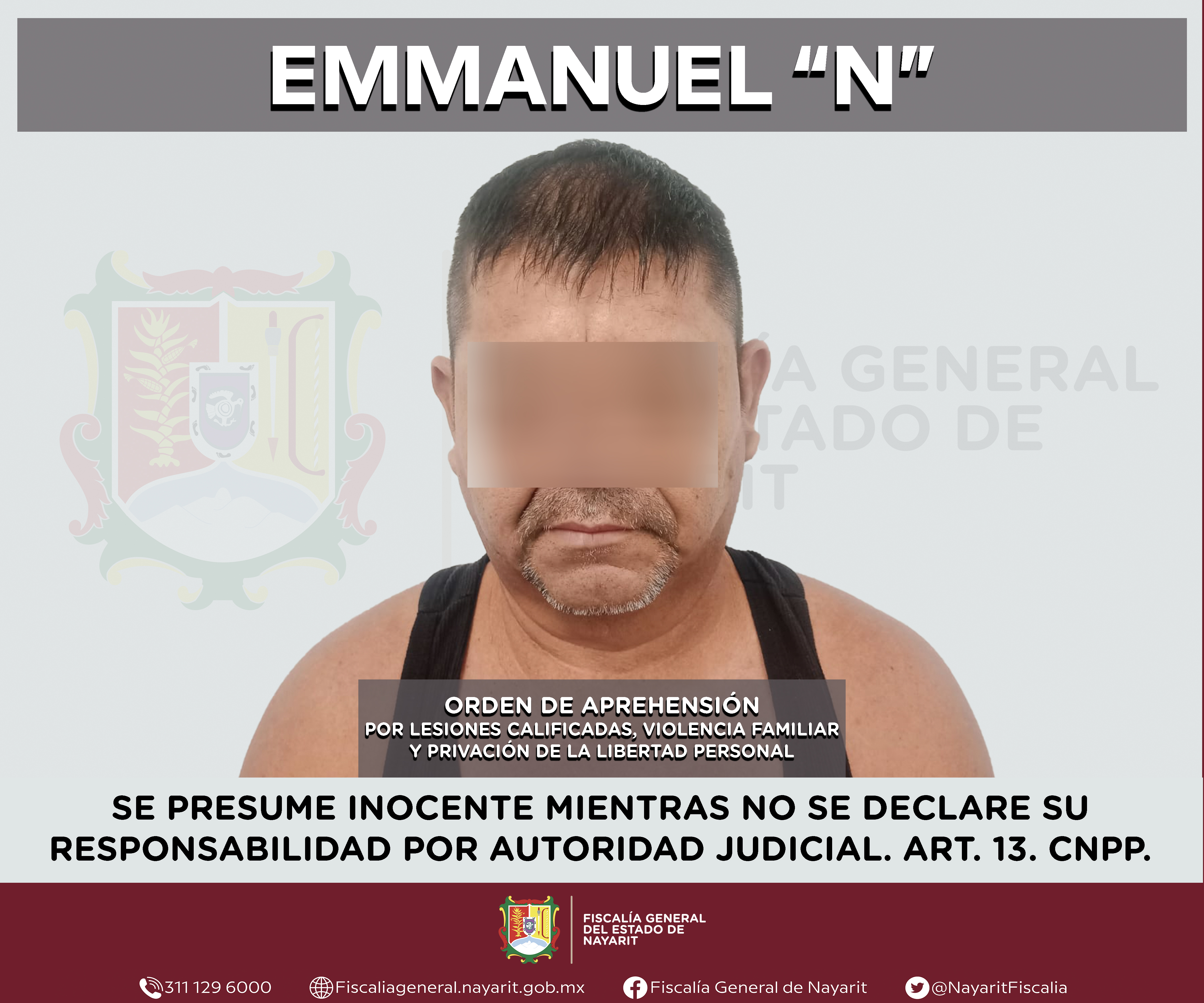 La Fiscalía General del estado de Nayarit a través de la Agencia de Investigación Criminal ejecutó una orden de aprehensión en la localidad Bucerías, municipio de Bahía de Banderas contra Emmanuel “N”, por su presunta participación en hechos ...