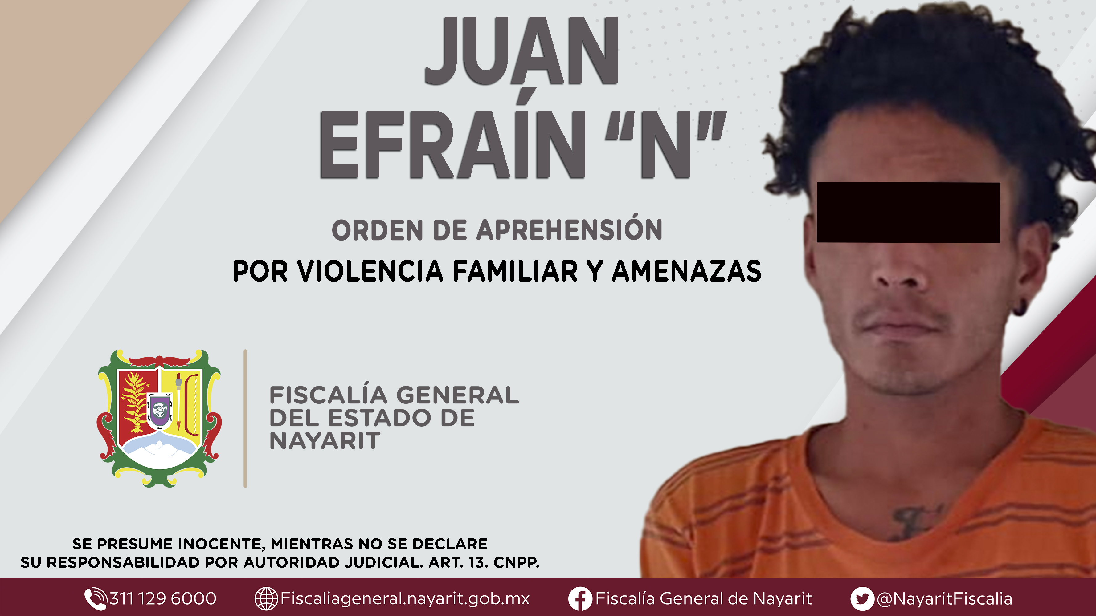 Elementos de la Agencia de Investigación Criminal de Nayarit ejecutaron una orden de aprehensión en la localidad Los Sabinos, municipio de Tepic contra Juan Efraín “N”, por su presuntiva responsabilidad penal en hechos que la ley califica como del...