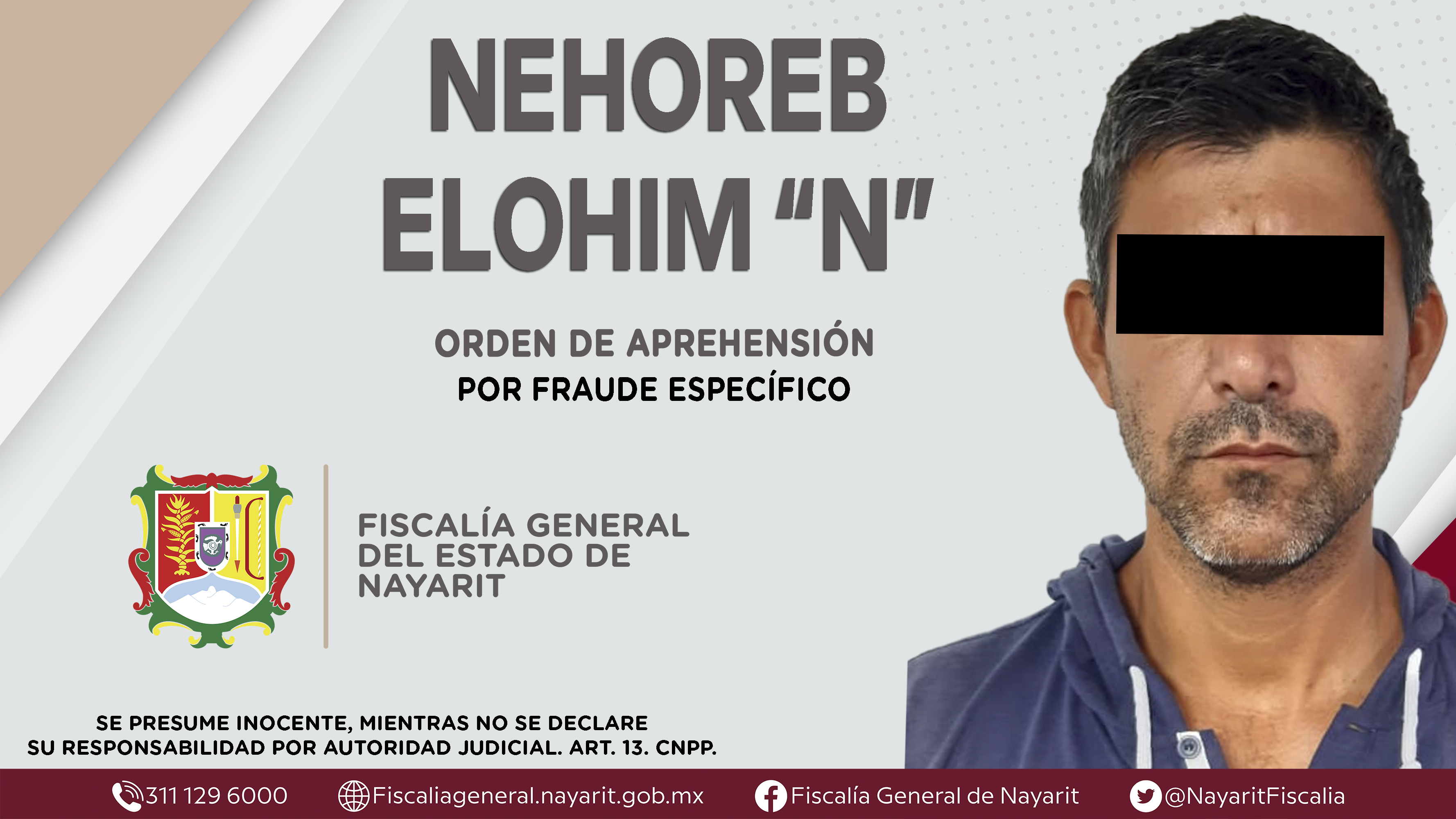 La Fiscalía General del Estado a través de la Agencia de Investigación Criminal dio cumplimiento a una orden de aprehensión en la capital nayarita contra Nehoreb Elohim “N”, por su presunta participación en hechos que según apreciación de la l...