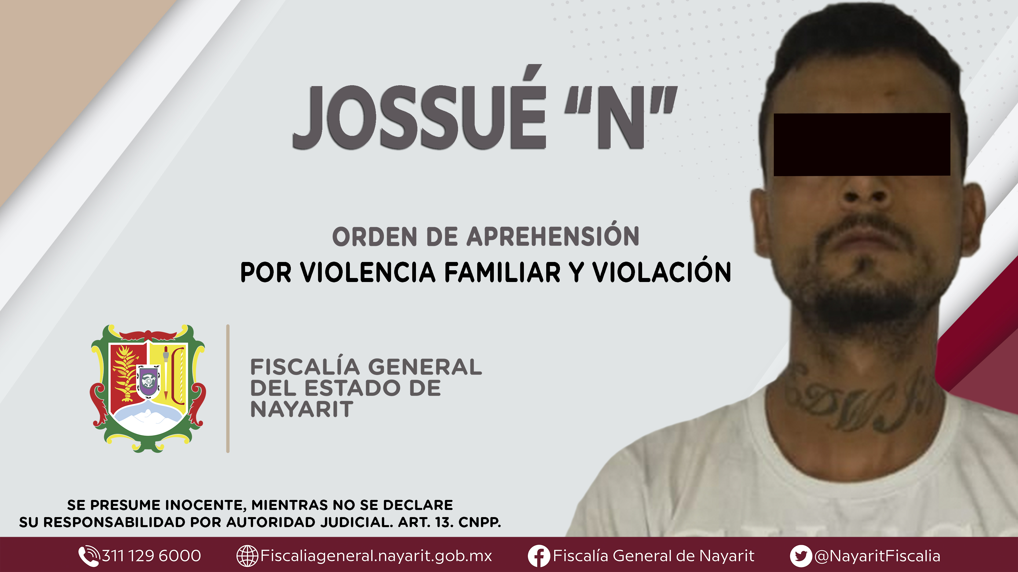 Elementos de la Agencia de Investigación Criminal de Nayarit ejecutaron una orden de aprehensión en el municipio de San Pedro Lagunillas contra Jossué “N”, por su presuntiva responsabilidad penal en hechos que la ley califica como delitos de viole...