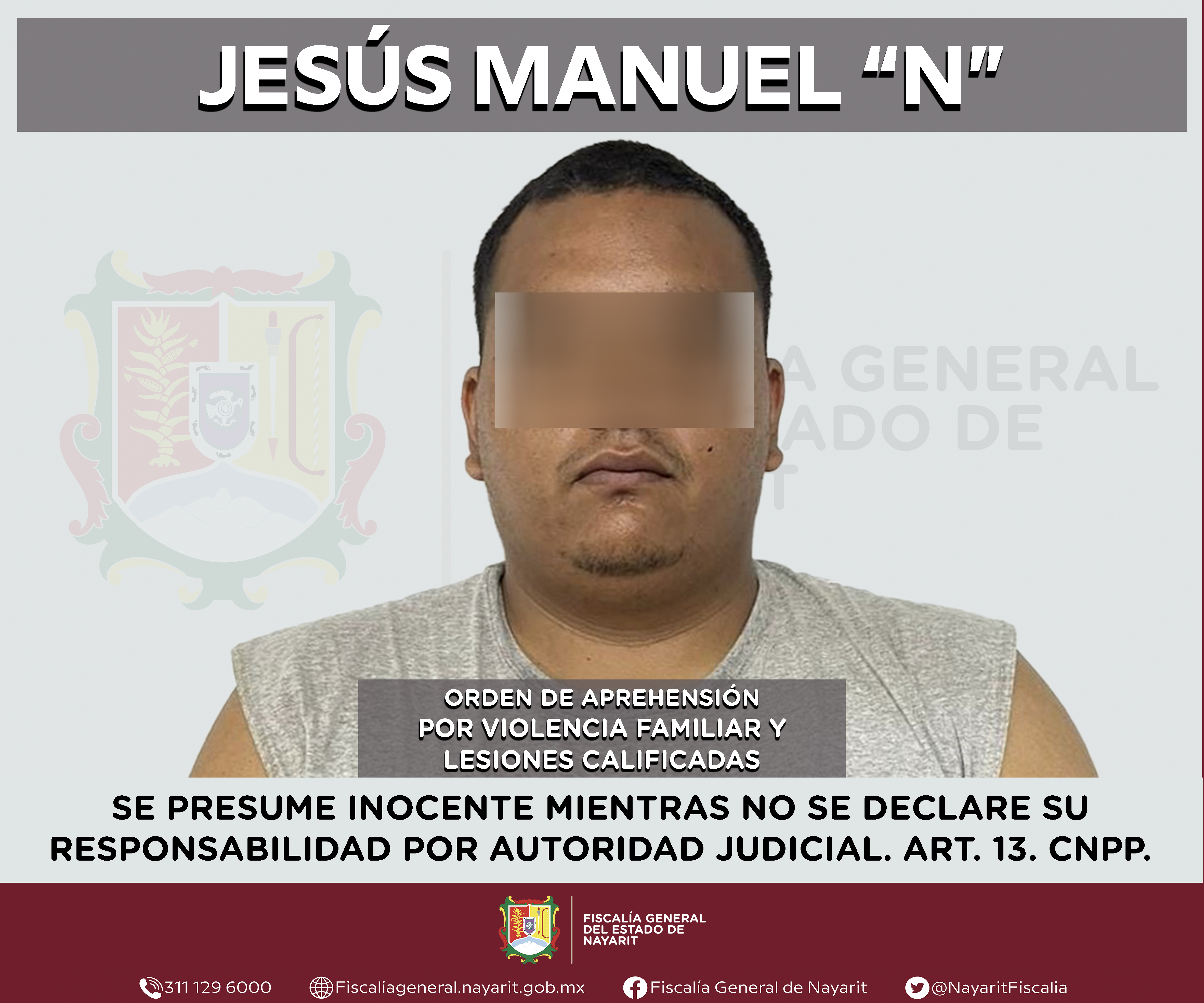 La Fiscalía General del estado de Nayarit a través de la Agencia de Investigación Criminal ejecutó una orden de aprehensión en la ciudad de Tepic contra Jesús Manuel “N”, por su presunta participación en hechos que según valoración de la ley...