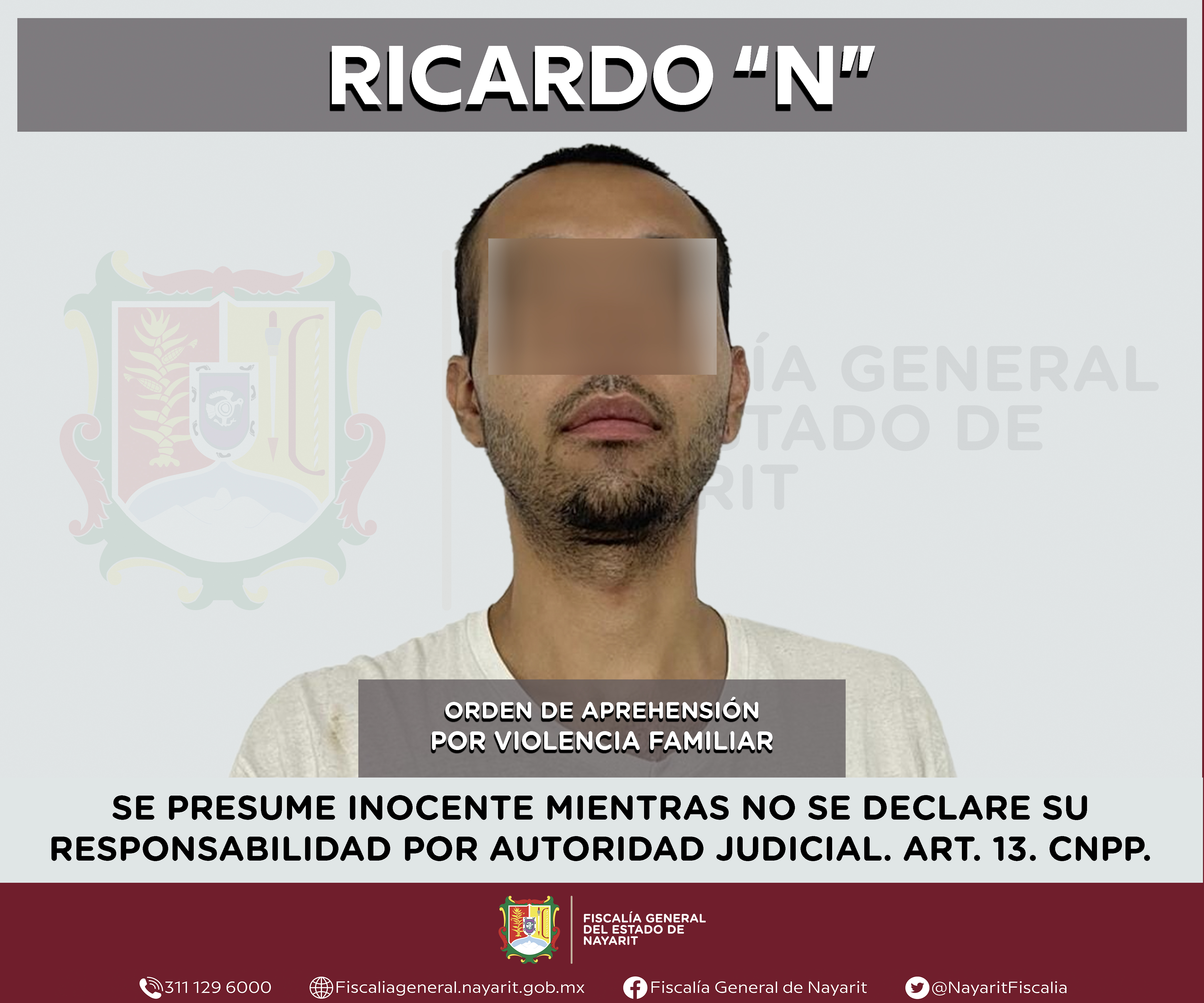 Elementos de la Agencia de Investigación Criminal de Nayarit ejecutaron una orden de aprehensión en la ciudad de Tepic contra Ricardo “N”, por su presunta participación en hechos que según apreciación de la ley encuadran el delito de violencia f...
