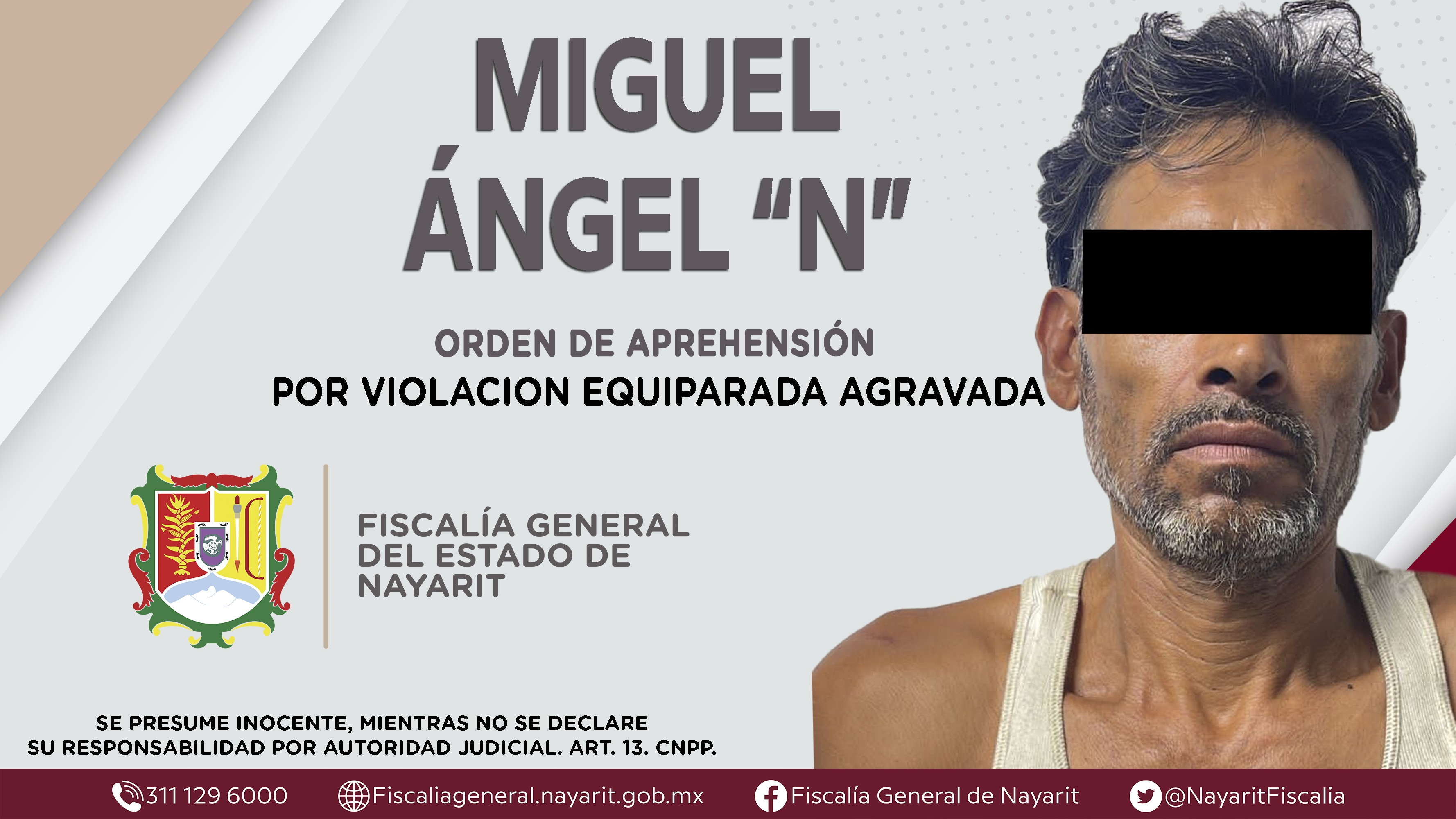 La Fiscalía General del Estado a través de la Agencia de Investigación Criminal dio cumplimiento a una orden de aprehensión en la ciudad de Tepic contra Miguel Ángel “N”, por su presunta participación en hechos que según apreciación de la ley...