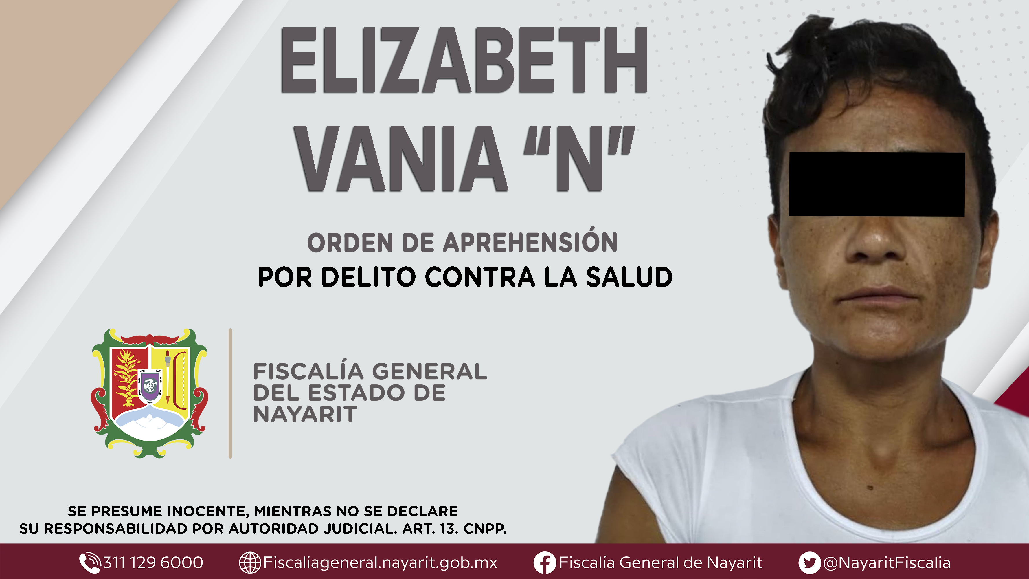 La Fiscalía General del Estado a través de la Agencia de Investigación Criminal dio cumplimiento a una orden de aprehensión en la ciudad de Tepic contra Elizabeth Vania “N”, por su presunta participación en hechos que según apreciación de la l...