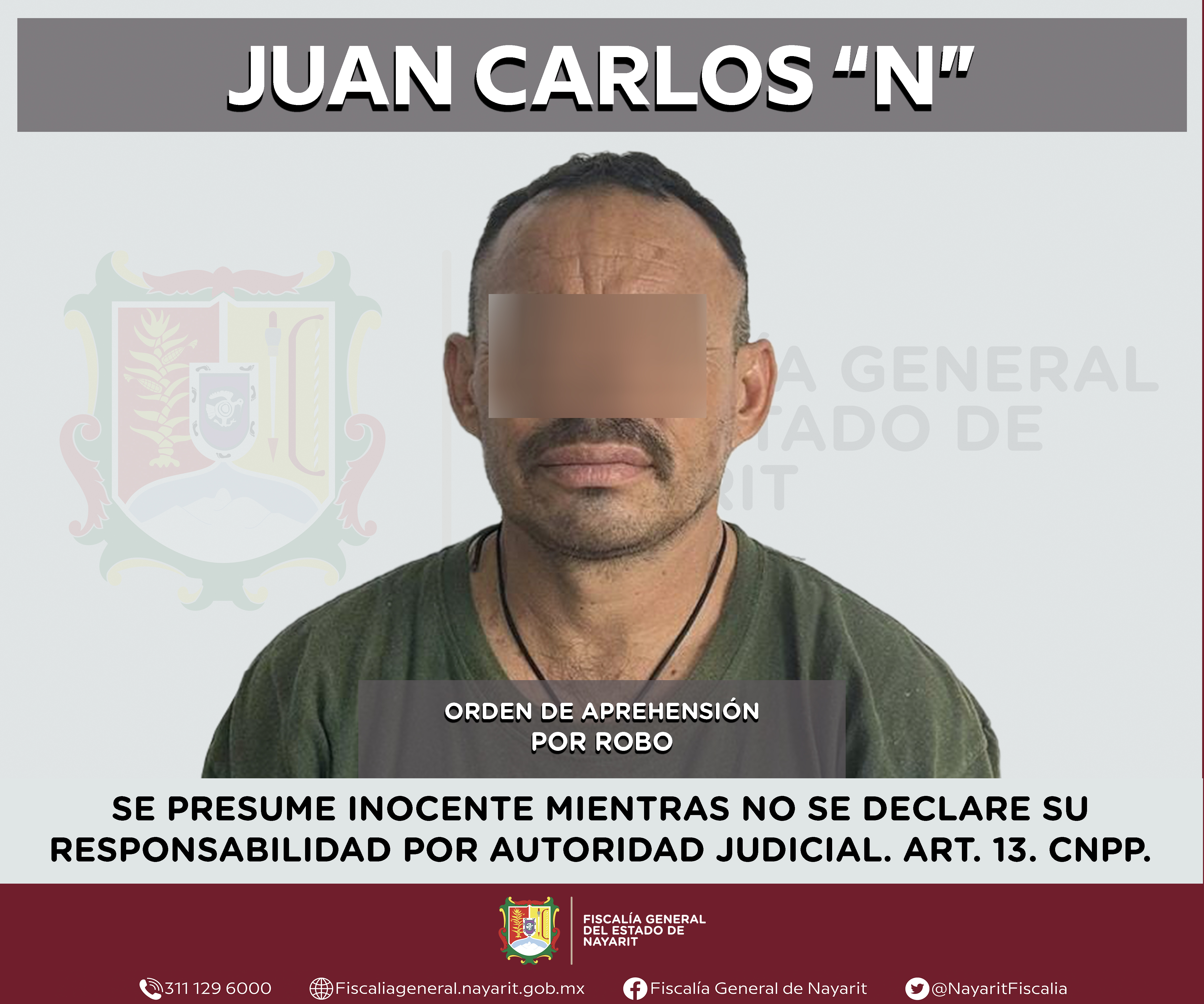 La Fiscalía General del estado de Nayarit a través de la Agencia de Investigación Criminal ejecutó una orden de aprehensión en la ciudad de Tepic contra Juan Carlos “N”, por su presunta participación en hechos que según valoración de la ley c...