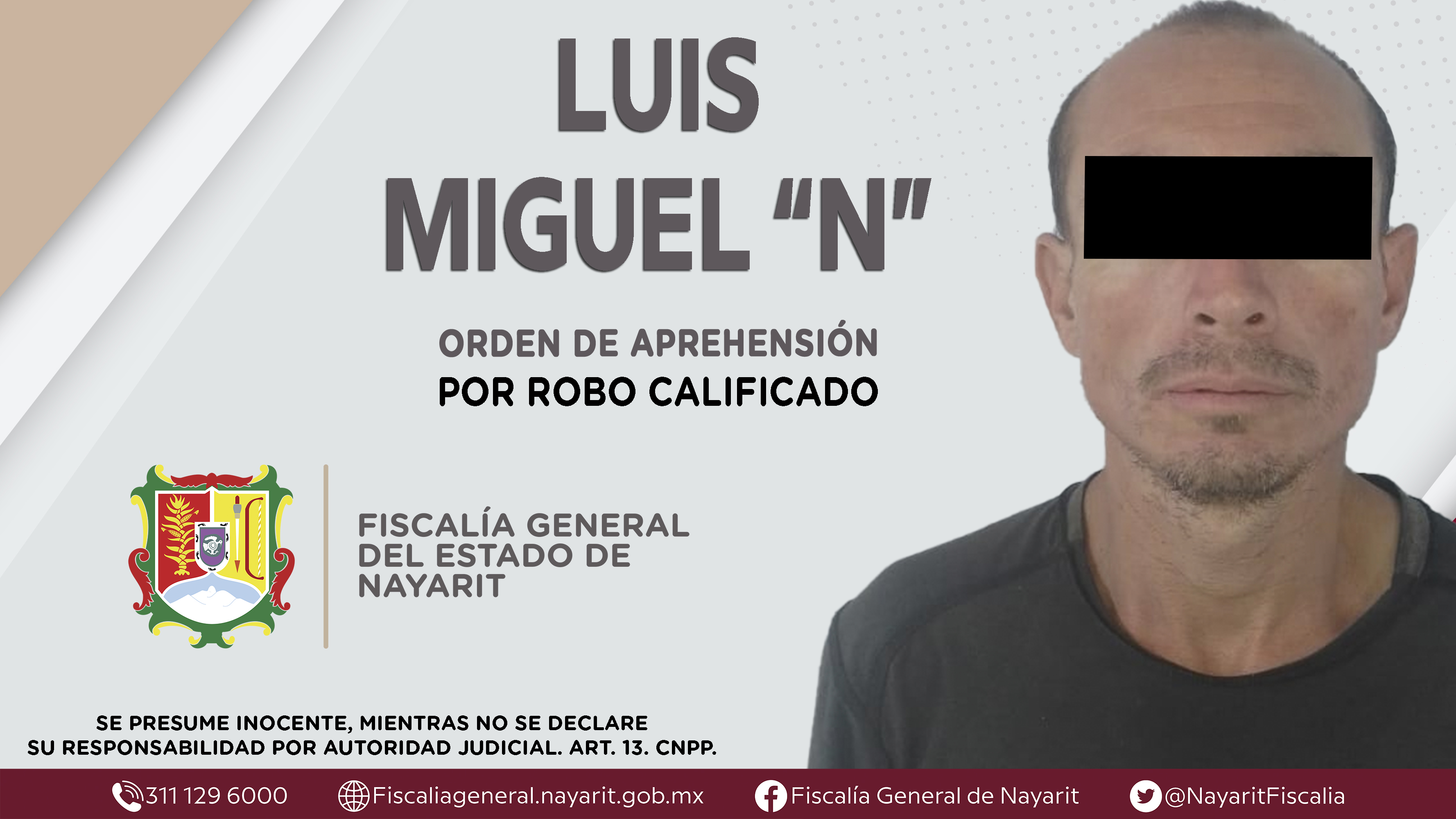Elementos de la Agencia de Investigación Criminal de Nayarit ejecutaron una orden de aprehensión en la ciudad de Tepic contra Luis Miguel “N”, por su presunta participación en hechos que según apreciación de la ley encuadran el delito de robo ca...