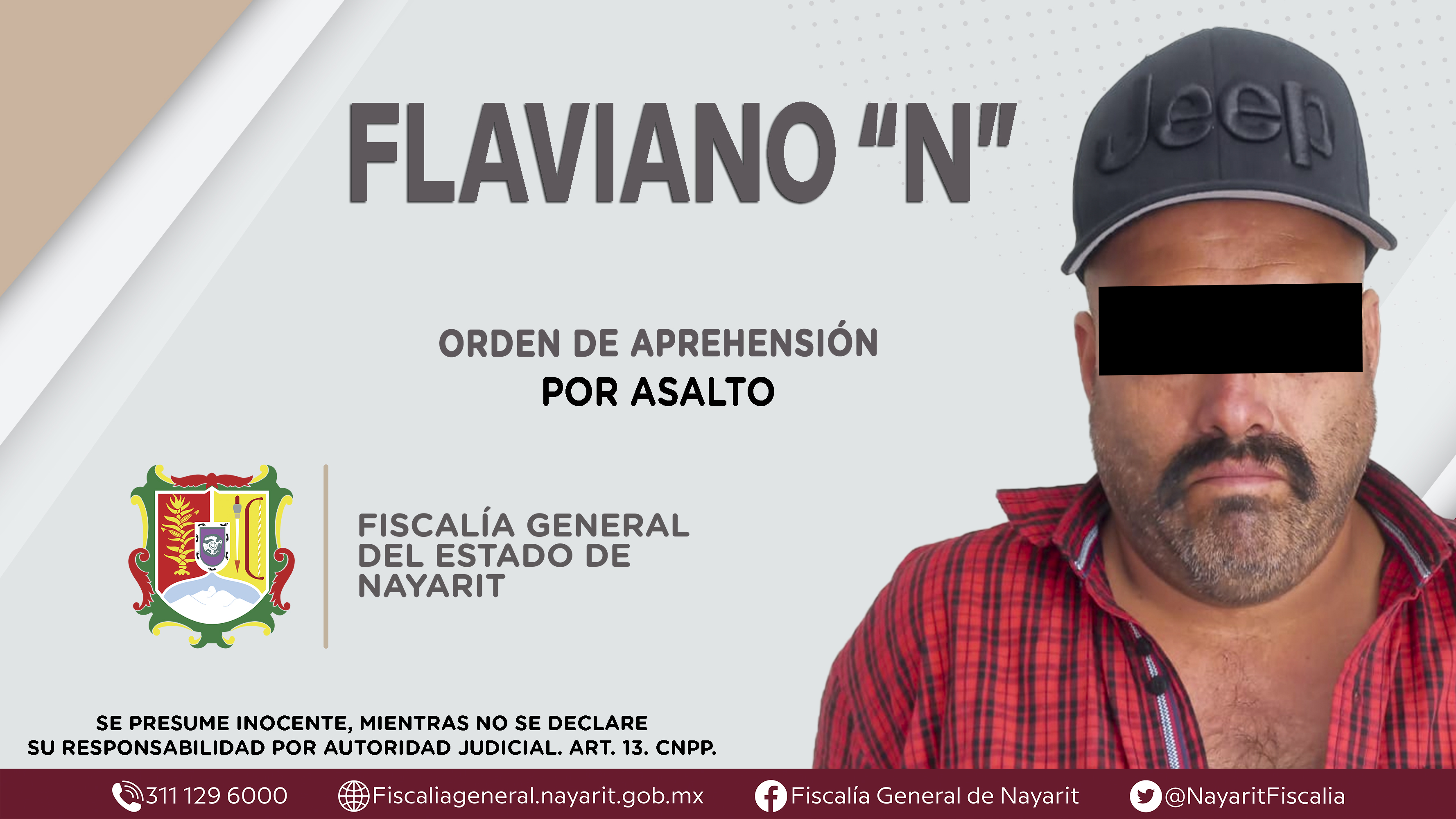 La Fiscalía General del Estado a través de la Agencia de Investigación Criminal dio cumplimiento a una orden de aprehensión en el municipio de Ixtlán del Río contra Flaviano “N”, por su presunta participación en hechos que según apreciación ...
