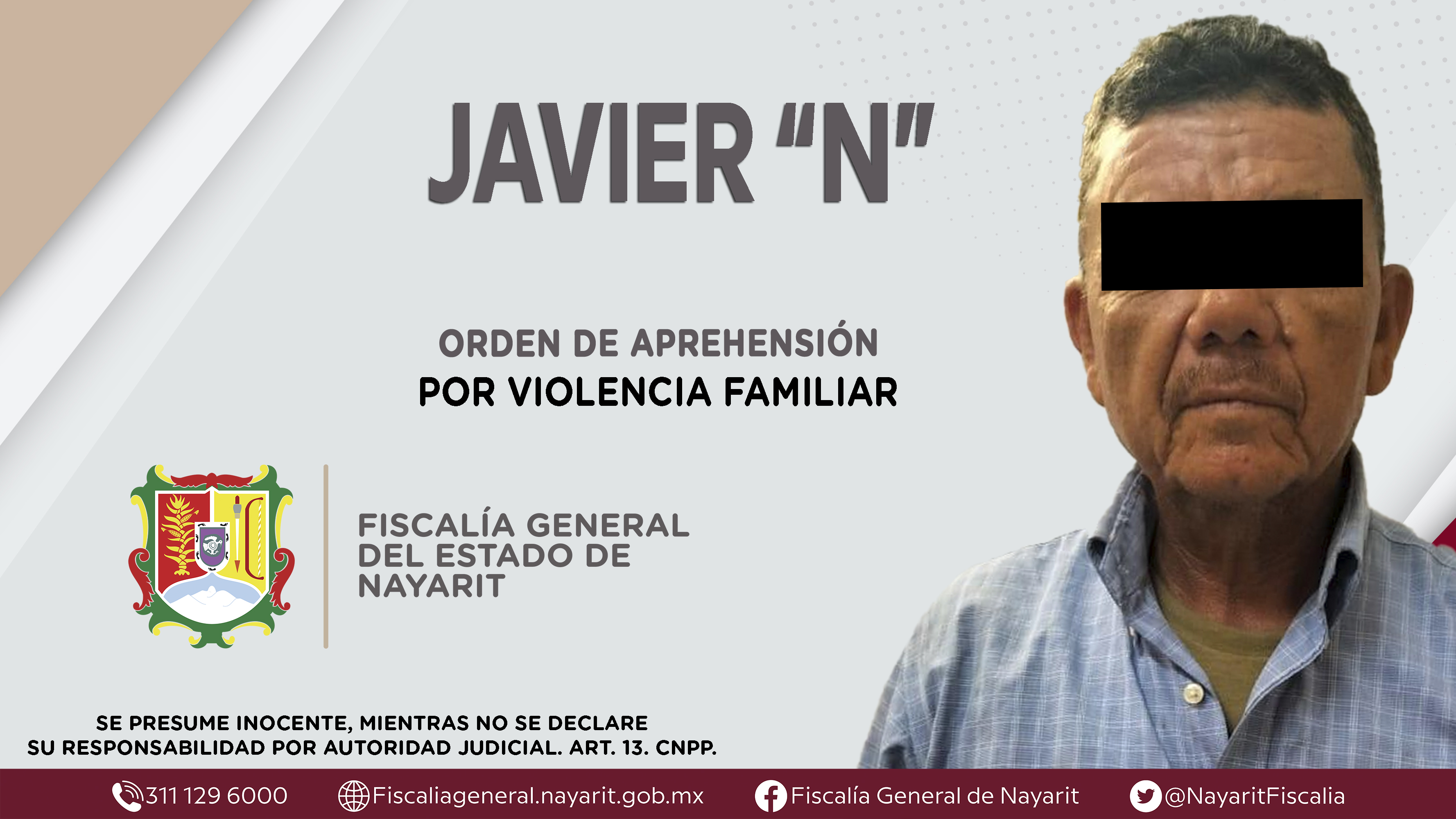 La Fiscalía General del Estado a través de la Agencia de Investigación Criminal dio cumplimiento a una orden de aprehensión en el municipio de Ruiz contra Javier “N”, por su presunta partic...