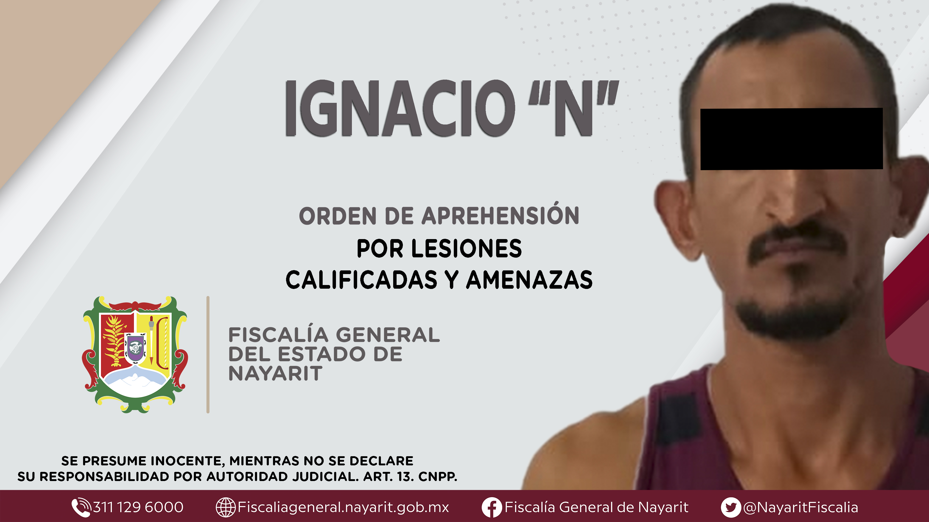 La Fiscalía General de Nayarit a través de la Agencia de Investigación Criminal ejecutó una orden de aprehensión en el municipio de Bahía de Banderas contra Ignacio “N”, originario del municipio de Tomatlán, Jalisco y vecino de la localidad Sa...