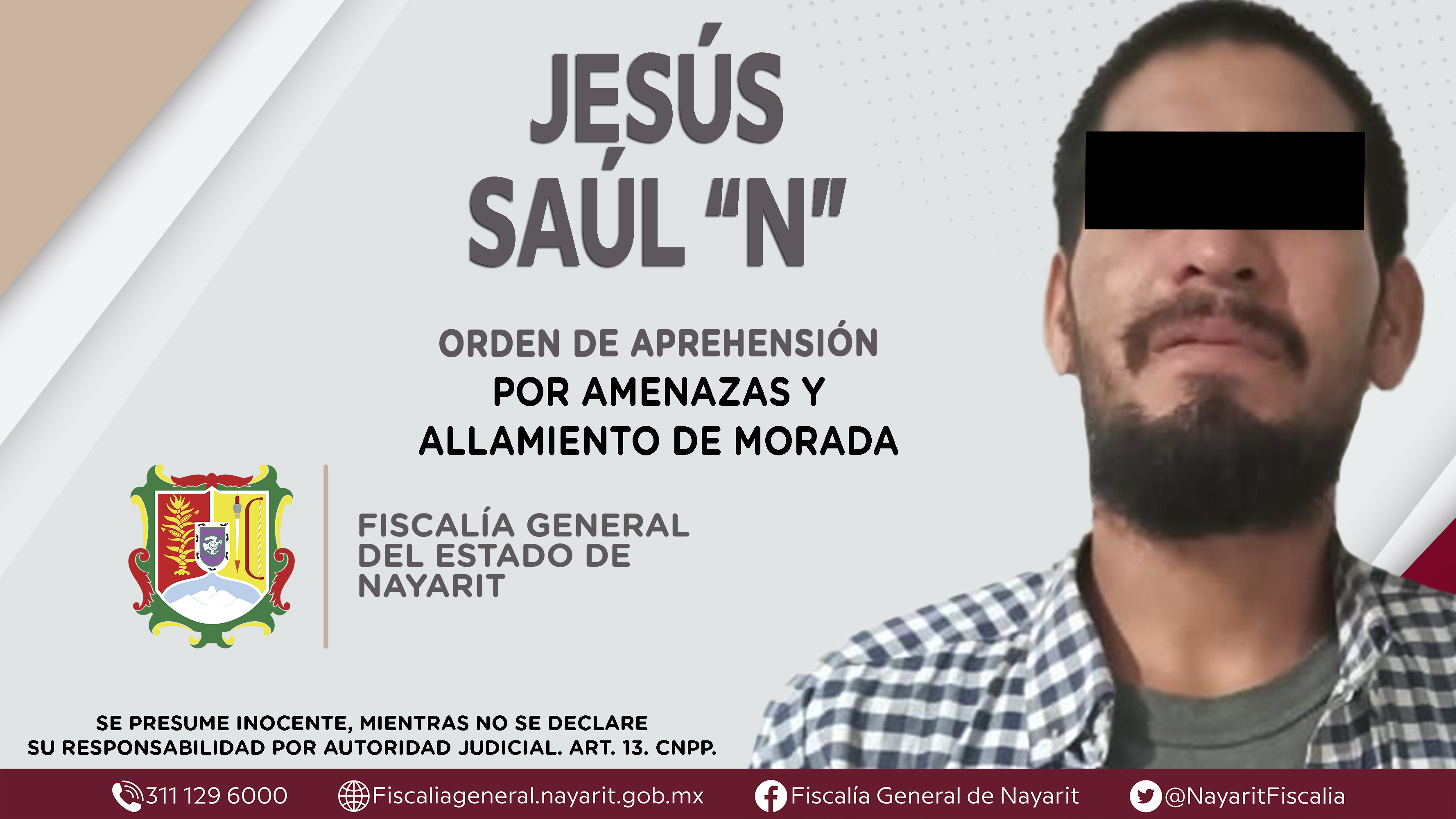 Elementos de la Agencia de Investigación Criminal de Nayarit ejecutaron una orden de aprehensión en el municipio de Ruiz contra Jesús Saúl “N”, por su presunta participación en hechos que según apreciación de la ley encuadran los delitos de am...